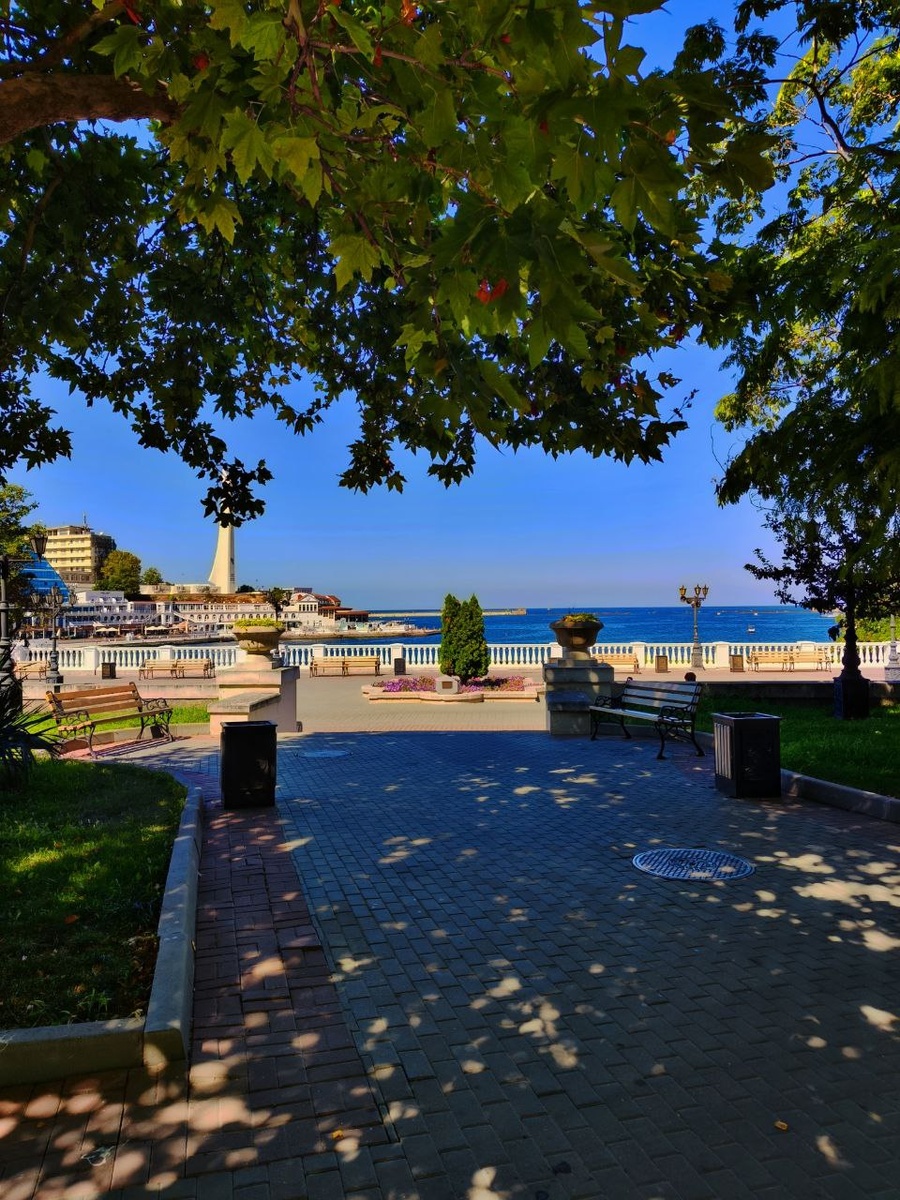 💙УТРЕННИЙ БУЛЬВАР В СЕВАСТОПОЛЕ: ГЛОТОК СЧАСТЬЯ, КОТОРЫЙ НУЖЕН КАЖДОМУ!💙 Есть в Севастополе место, где время замедляется, а сердце замирает от красоты. Утренний Приморский бульвар — это та самая магия, которой хочется дышать без остановки. Сегодня мы подарили себе неспешную прогулку от проспекта Нахимова до театра Луначарского. И это был чистый восторг! Утопающие в цветах аллеи, уютные кафетерии, где пахнет корицей и свежей выпечкой, и современный океанариум. Но главное — море! Оно такое бесконечно синее, что глазам не верится. Полный штиль. Лишь лёгкий ветерок доносит до нас целебные ноты морского воздуха. Сделайте глубокий вдох... Чувствуете? Лёгкие наполняются свежестью, а на душе становится невероятно спокойно и светло. Это ощущение настоящего счастья и гармонии. Именно ради этого сюда стоит приехать с семьёй. Прогулка здесь — это лучшая терапия и для детей, и для взрослых. Если вы ищете место для идеальной прогулки, где можно перезагрузиться и поймать тот самый