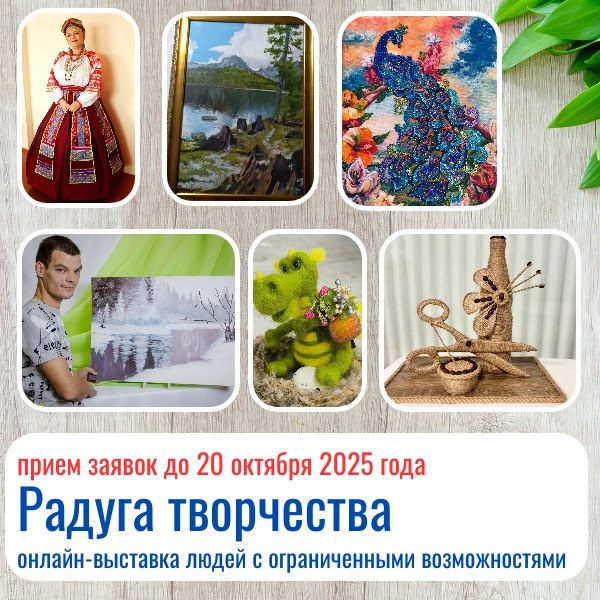 🖼️Открыт прием заявок на участие в онлайн-выставке «Радуга творчества». Участвуйте и смело заявляйте о своем таланте! 🎨 До 20 октября принимаются заявки на участие в традиционной выставке творчества, приуроченой к декаде инвалидов. 📍Участвовать могут люди с ограниченными возможностями здоровья и коллективы общественных организаций людей с инвалидностью, домов-интернатов, специализированных (коррекционных) школ-интернатов. Возраст участников – старше 16 лет. ➡️ Подробности – по ссылке: https://www.aksp.ru/news/news/60781/ #Радугатворчества #Алтайскийкрай #Минсоцзащита_22