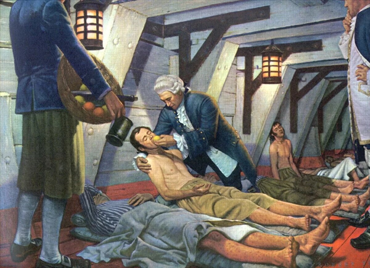 Π²Π°ΡΠΊΠΈ Π²ΠΈΡΠ°ΠΌΠΈΠ½Π° C. ΠΡΡ Π² XVI Π²Π΅ΠΊΠ΅ ΠΏΡΡΠ΅ΡΠ΅ΡΡΠ²Π΅Π½Π½ΠΈΠΊΠΈ Π·Π°ΠΌΠ΅ΡΠΈΠ»ΠΈ, ΡΡΠΎ ΡΠ°ΠΌ, Π³Π΄Π΅ Π² ΡΠ°ΡΠΈΠΎΠ½Π΅ Π±ΡΠ»ΠΈ ΡΡΡΠΊΡΡ ΠΈ Π·Π΅Π»Π΅Π½Ρ, ΠΌΠΎΡΡΠΊΠΈ Π±ΠΎΠ»Π΅Π»ΠΈ ΠΌΠ΅Π½ΡΡΠ΅. ΠΠ°ΡΠΊΠΎ Π΄Π° ΠΠ°ΠΌΠ° ΠΈ Π΅Π³ΠΎ ΠΊΠΎΠΌΠ°Π½Π΄Π°, Π½Π°ΠΏΡΠΈΠΌΠ΅Ρ, ΡΡΡΠ°Π΄Π°Π»ΠΈ ΠΎΡ ΡΠΈΠ½Π³ΠΈ, Π½ΠΎ ΠΌΠ΅ΡΡΠ½ΡΠ΅ ΠΆΠΈΡΠ΅Π»ΠΈ ΠΡΡΠΈΠΊΠΈ ΡΠΎΠ²Π΅ΡΠΎΠ²Π°Π»ΠΈ ΠΈΠΌ ΡΡΡΠΊΡΡ β ΠΈ ΡΠΎΡΡΠΎΡΠ½ΠΈΠ΅ ΡΠ»ΡΡΡΠ°Π»ΠΎΡΡ. ΠΠ΄Π½Π°ΠΊΠΎ ΠΌΠ΅Π΄ΠΈΡΠΈΠ½Π° ΡΠΎΠ³ΠΎ Π²ΡΠ΅ΠΌΠ΅Π½ΠΈ Π½Π΅ Π·Π½Π°Π»Π° ΠΏΡΠΎ Π²ΠΈΡΠ°ΠΌΠΈΠ½Ρ, ΠΈ ΡΠ²ΡΠ·Ρ ΠΎΡΡΠ°Π²Π°Π»Π°ΡΡ Π·Π°Π³Π°Π΄ΠΊΠΎΠΉ. Π XVIII Π²Π΅ΠΊΠ΅ ΡΠΎΡΠ»Π°Π½Π΄ΡΠΊΠΈΠΉ Π²ΡΠ°Ρ ΠΠΆΠ΅ΠΉΠΌΡ ΠΠΈΠ½Π΄ ΠΏΡΠΎΠ²ΡΠ» ΠΏΠ΅ΡΠ²ΡΠΉ Π² ΠΈΡΡΠΎΡΠΈΠΈ Β«ΠΊΠ»ΠΈΠ½ΠΈΡΠ΅ΡΠΊΠΈΠΉ ΡΠΊΡΠΏΠ΅ΡΠΈΠΌΠ΅Π½ΡΒ». ΠΠ½ ΡΠ°Π·Π΄Π΅Π»ΠΈΠ» ΠΌΠΎΡΡΠΊΠΎΠ² Π½Π° Π³ΡΡΠΏΠΏΡ ΠΈ Π΄Π°Π²Π°Π» ΡΠ°Π·Π½ΡΡ ΠΏΠΈΡΡ: ΡΠΊΡΡΡ, ΡΠΈΠ΄Ρ, ΡΠΎΠ»ΡΠ½ΡΡ Π²ΠΎΠ΄Ρ ΠΈ Π»ΠΈΠΌ