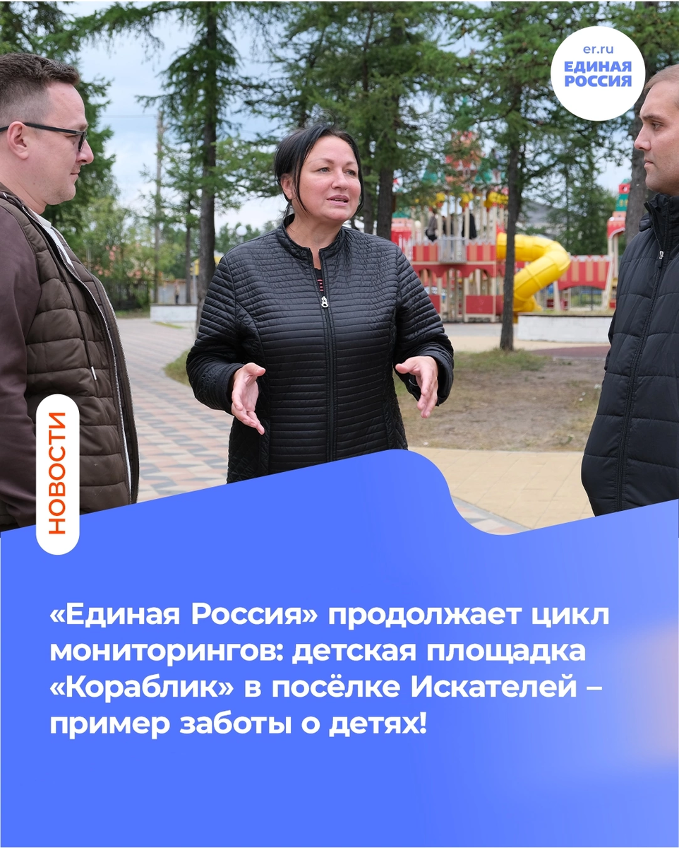 «Единая Россия» продолжает цикл мониторингов: детская площадка «Кораблик» в посёлке Искателей – пример заботы о детях!