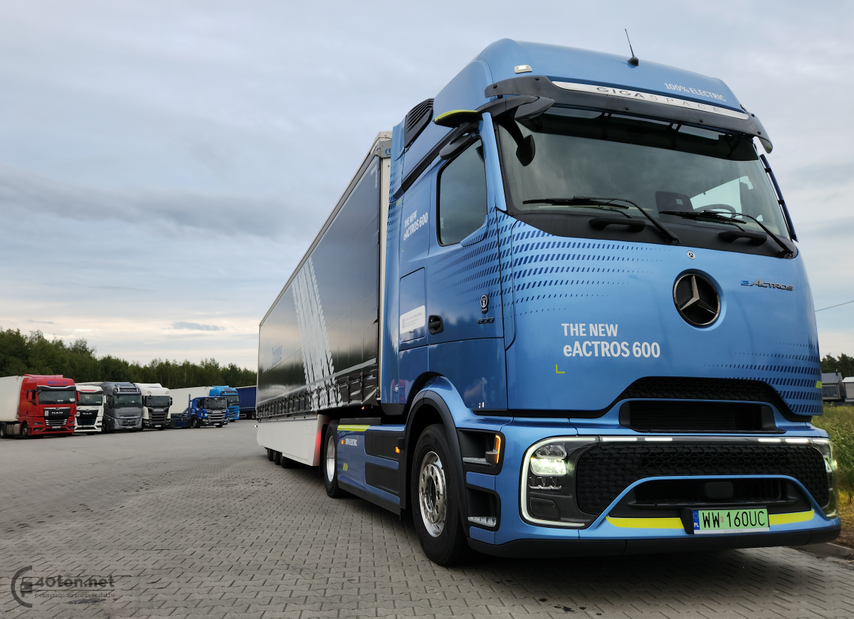 Mercedes-Benz Trucks Польша в последние дни забрала весь парк тестовых eActros 600, уже полностью серийных. На фотографиях вы можете увидеть именно такую новую "демку", отличающуюся не только электроприводом, но и очень богатым оборудованием. У нас есть самая высокая кабина GigaSpace, интерьер с концепцией SoloStar” салон", длинный список новейших электронных систем,а также элегантная отделка в рамках пакета Trend Line. Все это выглядит точно так же, как и с новыми Actros в версии внутреннего сгорания. Есть те же условия на рабочем месте водителя и даже те же условия отдыха, что делает со стороны кузова eActros 600 грузовиком просто дальнего следования. Полностью сопоставимыми я бы также определил управляемость и поведение систем помощи при вождении.
