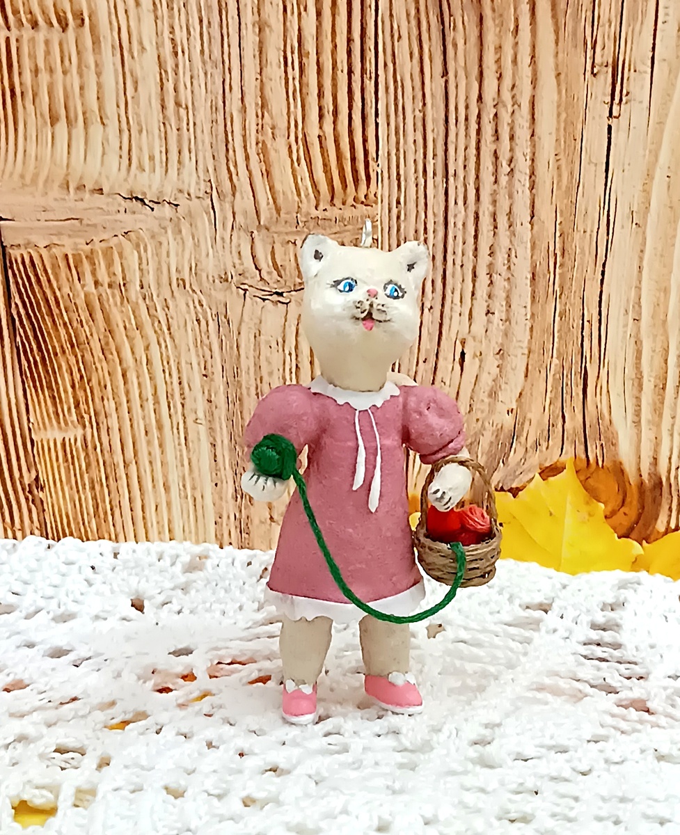 Ватная игрушка "Кошечка с клубочками", часть 4. Хвост и мордочка