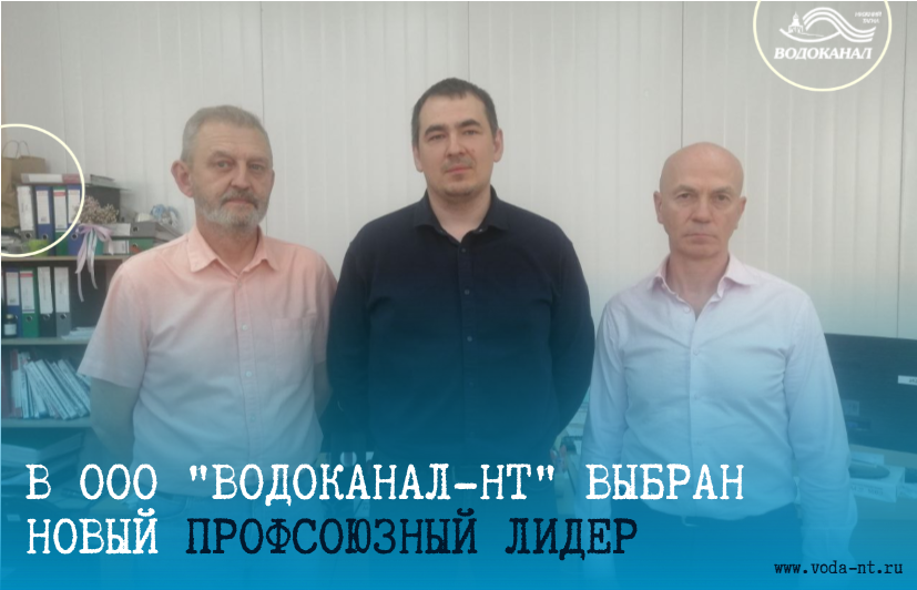 В конце июня коллектив ООО "Водоканал-НТ" выбрал нового председателя первичной профсоюзной организации — им стал руководитель Западной системы очистных сооружений Михаил Пшеничников. Предыдущий глава профсоюза начальник цеха водоснабжения Олег Шишкин сложил свои полномочия по собственному желанию. Кроме того, был избран помощник председателя. Им стал заместитель директора по безопасности ООО "Водоканал-НТ", председатель Общественного совета при МУ МВД России "Нижнетагильское" Александр Головихин. На предвыборной конференции также были выбраны члены, в том числе и резервные кандидатуры, ревизионно-счётной комиссии первичной профсоюзной организации предприятия. На сегодня в первичной профсоюзной организации ООО "Водоканал-НТ" состоит 312 работников предприятия.