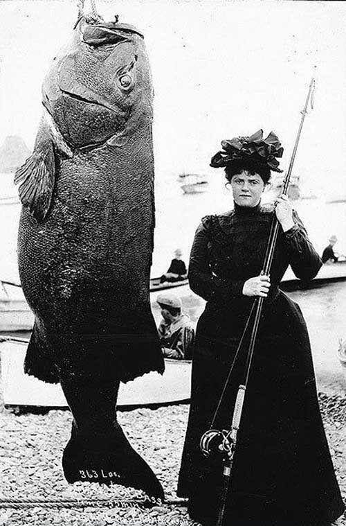 Однажды в 1901 г. миссис E. N. Dickerson поймала гигантского морского окуня... 😌