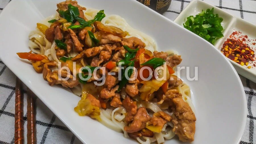Всем привет. Сегодня у нас очередной вариант приготовления макарошек с мясом в силе — смешали всё, что было в холодильнике, добавили азиатский соус и получилось вкусное и сытное японское блюдо ). Продуктовый набор: Лапшу отвариваем в течение пяти минут. Морковь режем соломкой, капусту, грибы и мясо небольшими ломтиками, чеснок мелко рубим. Обжариваем морковь и грибы в небольшом количестве растительного масла на сильном огне 2 минуты. Добавляем капусту, жарим две минуты, перекладываем в миску. Добавляем немного масла, обжариваем мясо в течение пары минут. Добавляем оба соуса, перемешиваем, готовим минуту, возвращаем овощи, прогреваем минуту. Раскладываем лапшу по тарелкам, сверху мясо с овощами и подаём, украсив зелёным луком, кинзой и т. д. Приятного аппетита!