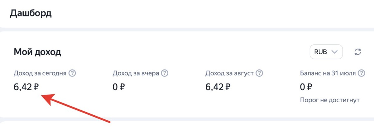 Час назад добавили блоки РСЯ на проект tapki.com - подсветил на картинке, сколько заработали