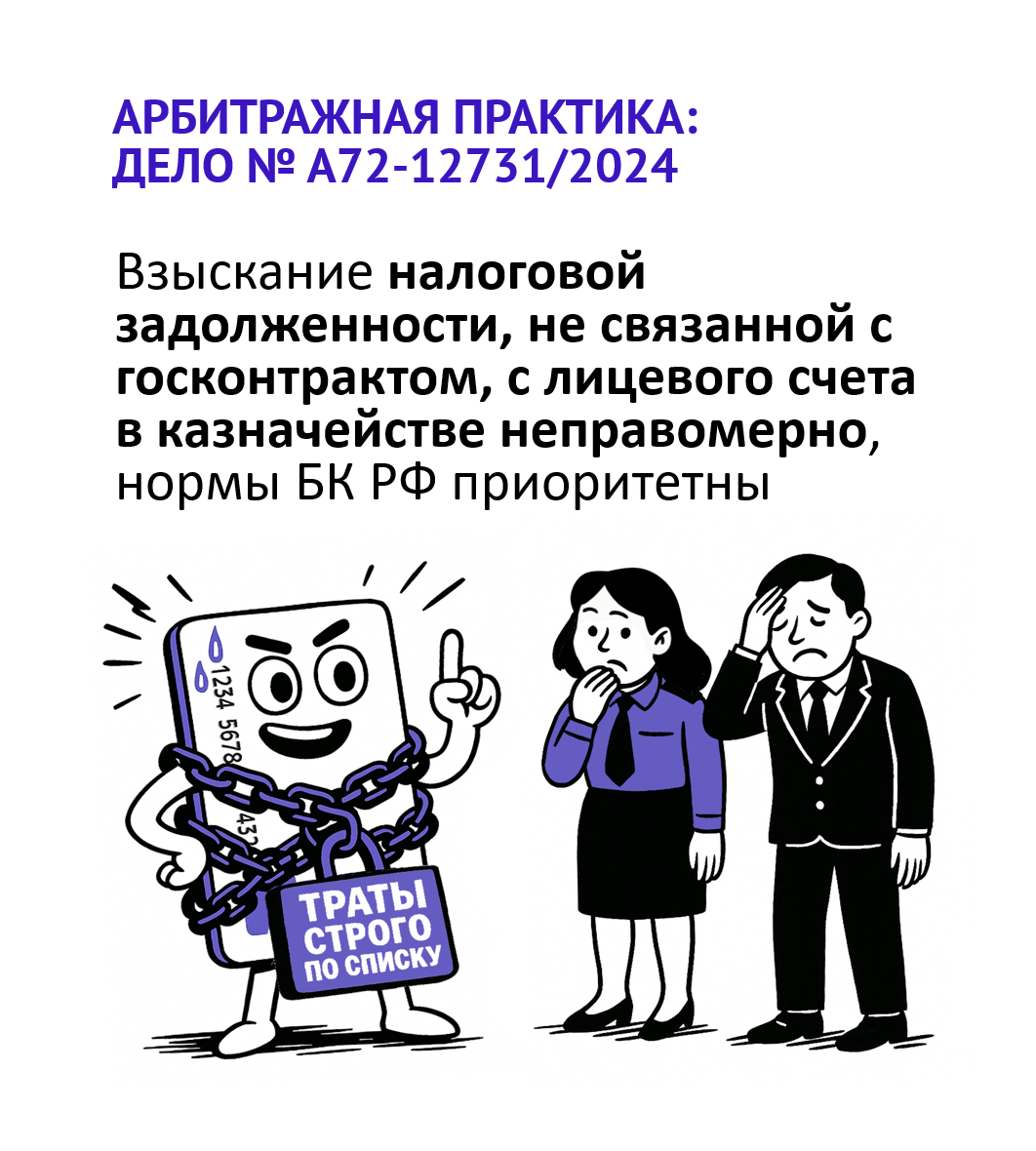 Государство выделило компании деньги по госконтракту и положило их на специальный, контролируемый счёт в Казначействе. У этой же компании был старый налоговый долг. Налоговая служба пыталась забрать деньги со специального счёта, чтобы погасить этот долг, дело А72-12731/2024.