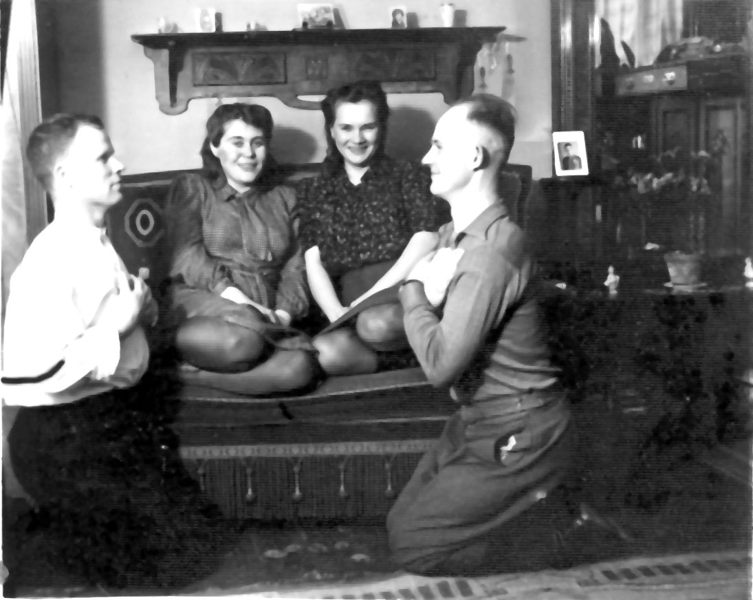 Отец с сослуживцем дают клятву верности своим женам. Фото сделала баронесса. Все на хорошем подпитии. В Перестройку отца удивляло, что люди верят откровенному вранью, по поводу массового насилия советскими воинами девушек и женщин в освобождаемых странах. Отец хранил целую обувную коробку с письмами, записочками и фотографиями своих тамошних дамочек. Все начинались в духе Meine leiblich her kapitan. Мама, когда папа умер, от меня тайком, сожгла эту обувную коробку образцов эпистолярного жанра. Отец говорил, это было естественным, женщины интуитивно чувствовали, мужскую силу победителя, они хотели иметь сильную кровь в своих детях. Причем, предпочтением пользовались фронтовики, нежели штабные. Командованием на это закрывались глаза, но любой факт насилия карался военным трибуналом смертью, достаточно было двух свидетелей от пострадавшей стороны. Маме хватало мудрости и, когда отец служил в КГБ Таганрога, у него одновременно были две конспиративные квартиры, исключительно для встреч служ