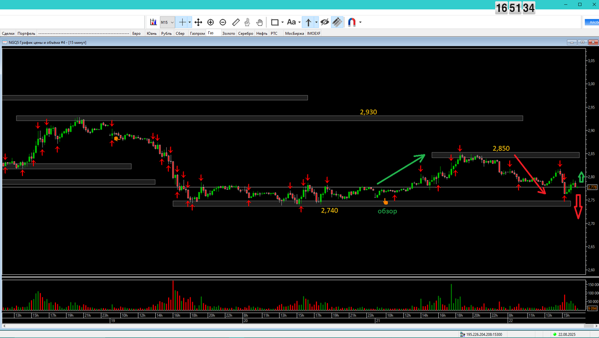 Вчера на фоне высокой активности с обеих сторон, рынок пошёл по плану А), то есть сперва ушёл в достаточно глубокую коррекцию, придя в зону 2,850, а затем возобновил падение и фактически вернулся в зону локальной поддержки 2,740 Сейчас здесь проходит в том числе и бычья ликвидность, поэтому в моменте цена может скорректироваться выше. В то же время, локально медведи очень активны, поэтому вероятность обновления уровня 2,740 - очень высока 👉 Предыдущий пост https://t.me/treydingnenaslovah/3396 #NG #NGQ5 #NG1
