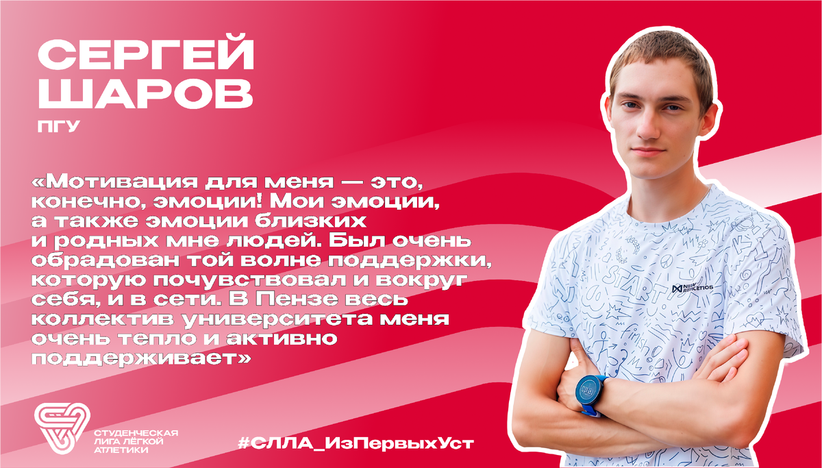 Студента Пензенского государственного университета Сергея Шарова можно смело назвать открытием сезона. Еще весной его знали лишь в лыжных кругах, но участие в Большом фестивале бега резко изменило ситуацию: он сразу занял второе место и громко заявил о себе. Позже он выиграл Первенство России U23 на 10000 м (правда, результат аннулировали из-за «неправильных» кроссовок), а затем победил на полумарафоне «Северная столица», а также стал четвертым на ПСБ Чемпионате России в Казани, вновь на дистанции 10000 м. Знакомимся с ним поближе! Что стало решающим мотивом перехода в легкую атлетику? Наше совместное с моим тренером по лыжным гонкам решение о переходе в лёгкую атлетику сложилось после Большого фестиваля бега в Москве. Стало очевидным, что стоит пробовать реализоваться в беговых дисциплинах. При этом я пока буду бегать и на лыжах — например, выступать за команду своего вуза — Пензенского госуниверситета. С какими эмоциями вспоминаешь свой первый серьезный старт в беге? Моим первым легк