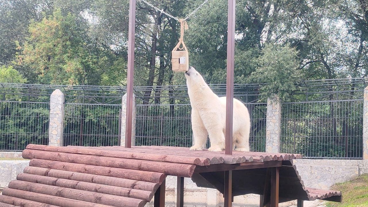 🐻❄️У белой медведицы Думки из Большереченского зоопарка новое развечение- деревянная платформа