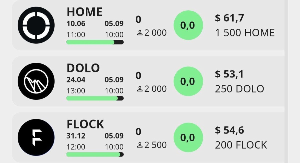 Bybit ещё жив 😁 Биржа запустила сразу 3 новых Token Splash, где новые пользователи смогут получить по 1500 $HOME (~60$), 250 $DOLO (~55$) или 200 $FLOCK (~55$). Что нужно делать: 1️⃣ Регаемся на бирже 👉 ByBit и проходим KYC 1 - верефикацию 2️⃣ Переходим по ссылке и подтверждаем участие Новые пользователи: Депозитим от 100$ и покупаем/продаем на 100$+ токен HOME, DOLO или FLOCK. Из плюсов то, что токены старые и уже торгуются, поэтому курс более менее стабильный и вряд-ли сильно просядет. ✈Bybit (https://partner.bybit.com/b/43818) | Chat | Admin
