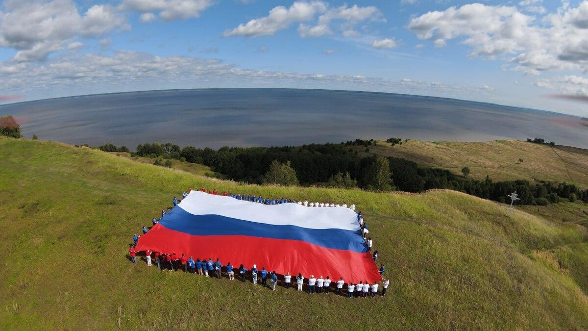 🇷🇺 В честь Дня Государственного флага России в Горномарийском районе Марий Эл развернули большой российский флаг