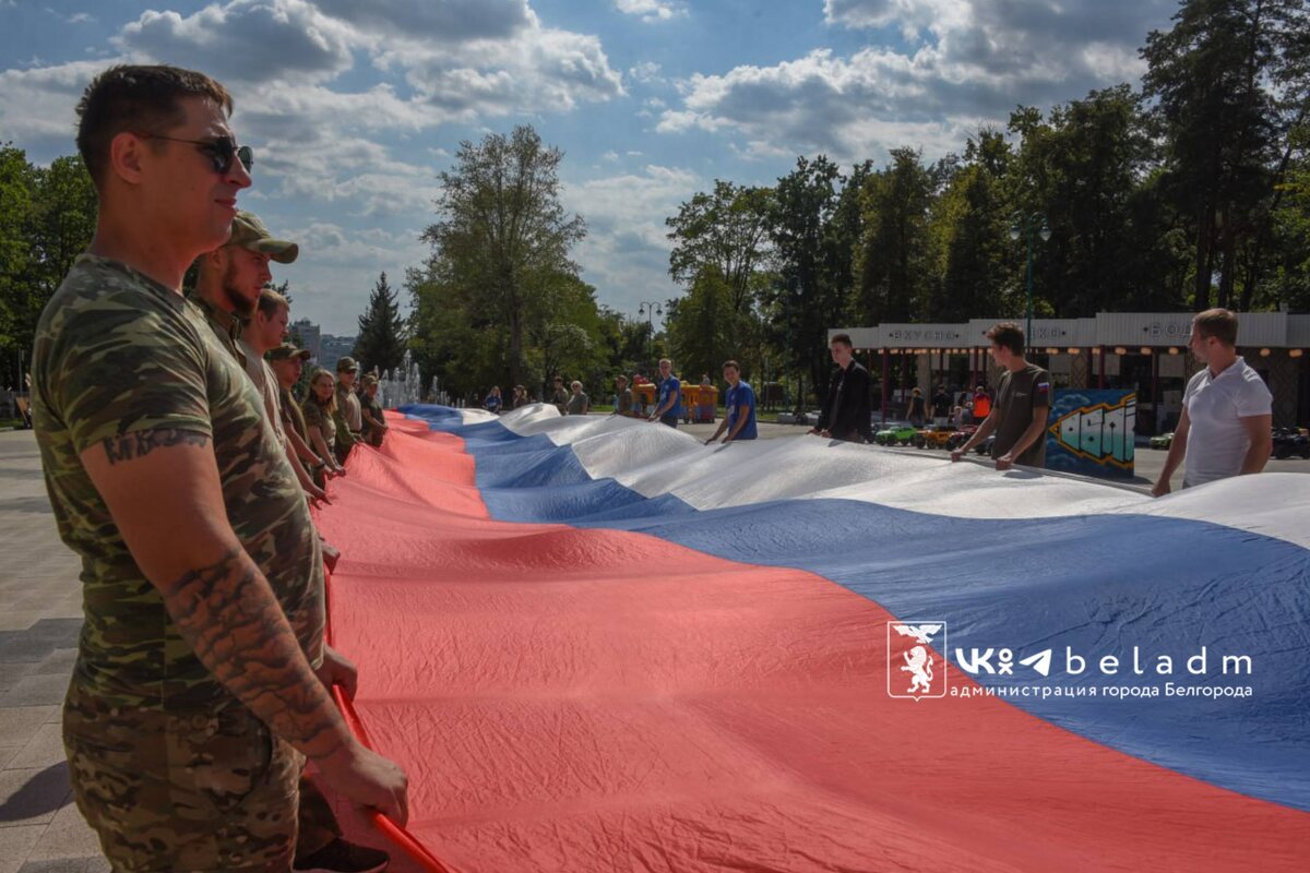 В преддверии Дня российского флага на площади перед КЦ «Октябрь» развернули 30-метровый триколор В акции приняли участие активисты «Молодой Гвардии», «Народного фронта» и «Ополчения 31». Размер полотна 30 на 4,5 метра. Сегодня, в честь праздника, в городе раздают ленточки с российским триколором. Получить её можно в Центральном парке им. В.И. Ленина и в парке Победы. Поздравляем всех белгородцев с праздником! Пусть наш флаг всегда гордо реет как символ мира, мужества и великой истории. Под ним мы сильны и непобедимы!🇷🇺