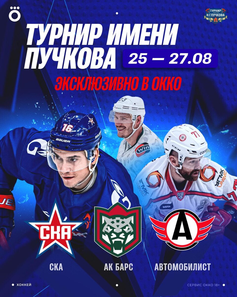 Okko эксклюзивно покажет турнир имени Пучкова 🏒 ХК СКА проведёт традиционный предсезонный турнир в Санкт-Петербурге с 25 по 27 августа. Помимо организаторов в соревновании примут участие «Ак Барс» и «Автомобилист». 😀 Все игры турнира имени Пучкова будут доступны бесплатно по регистрации в Okko: https://okko.tv/s/swd