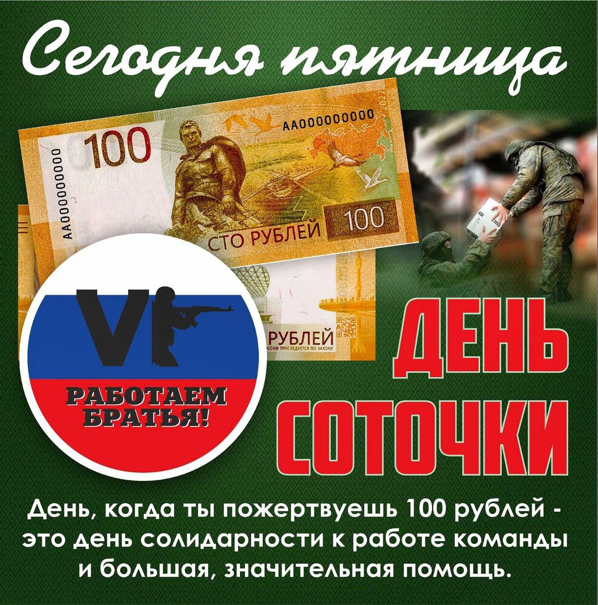🪖🪖🪖 ‼️Доброе утро уважаемая и дорогая группа - Работаем Братья‼️ Сегодня ПЯТНИЦА‼️✊ Каждую пятницу, мы объявляем всеобщий сбор средств для пополнения остатка на карте для закупа необходимых средств, обмундирования, медикаментов и многое другое, что необходимо для наших ребят, а также закупки необходимых материалов для вязки сетей🔥🔥🔥 Сейчас необходимо закупать спанбонд для вязки сетей ‼️ Каждого из Вас просим принять участие в акции: от100р++‼️‼️‼️ Сегодня вечером мы опубликуем результаты 🫡✊ Проявим единство и подтвердим на деле, наше стремление помочь Бойцам - значит помочь фронту‼️🔥‼️ ✊✊✊🇷🇺🫡🫡🫡 Перевод средств по тел. +79288447070 Алим В. Т банк, реквизиты карты 2200 7013 2243 2797 БЛАГОТВОРИТЕЛЬНЫЙ ФОНД «РАБОТАЕМ БРАТЬЯ» РЕКВИЗИТЫ ДЛЯ ПЕРЕЧИСЛЕНИЯ БЛАГОТВОРИТЕЛЬНЫХ ВЗНОСОВ ИНН 2304084302 КПП 230401001 ОГРН 1242300060947 *Расчетный счет* 40703810680340000003 БИК 044525593 Корр. счет 30101810200000000593 Наименование банка АО "АЛЬФА-БАНК" г. Москва #сво #архипоосиповка