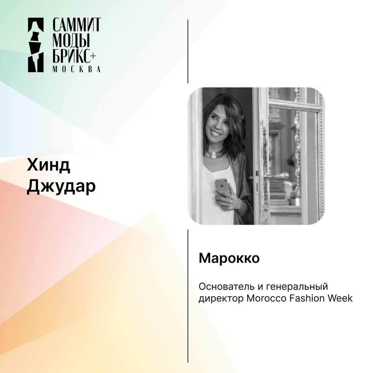 Сессия деловой программы BRICS+ Fashion Summit «Код земли. Ремесло, наследие и локальные практики» пройдёт 29 августа в 15:00. (Зал «Большой») Модератор сессии: руководитель АНО Агентства креативных индустрий Москвы Гюльнара Агамова. Спикеры сессии: основатель и генеральный директор Baghdad Fashion Week Сенан Камель, основатель и генеральный директор Morocco Fashion Week Хинд Джудар, президент Ассоциации «Ремесленный Совет Кыргызстана» Нурзат Жээнбек кызы, генеральный директор Nicaragua Diseña, генеральный координатор Комиссии по креативной экономике Никарагуа Камила Ортега Мурильо, директор Tajikistan Fashion Week Тахир Зохирзод, председатель правления Национального союза народных художественных промыслов Вячеслав Долгов. Попасть на деловую программу BRICS+ Fashion Summit (Саммит Моды БРИКС+) могут все желающие по предварительной регистрации на официальном сайте.