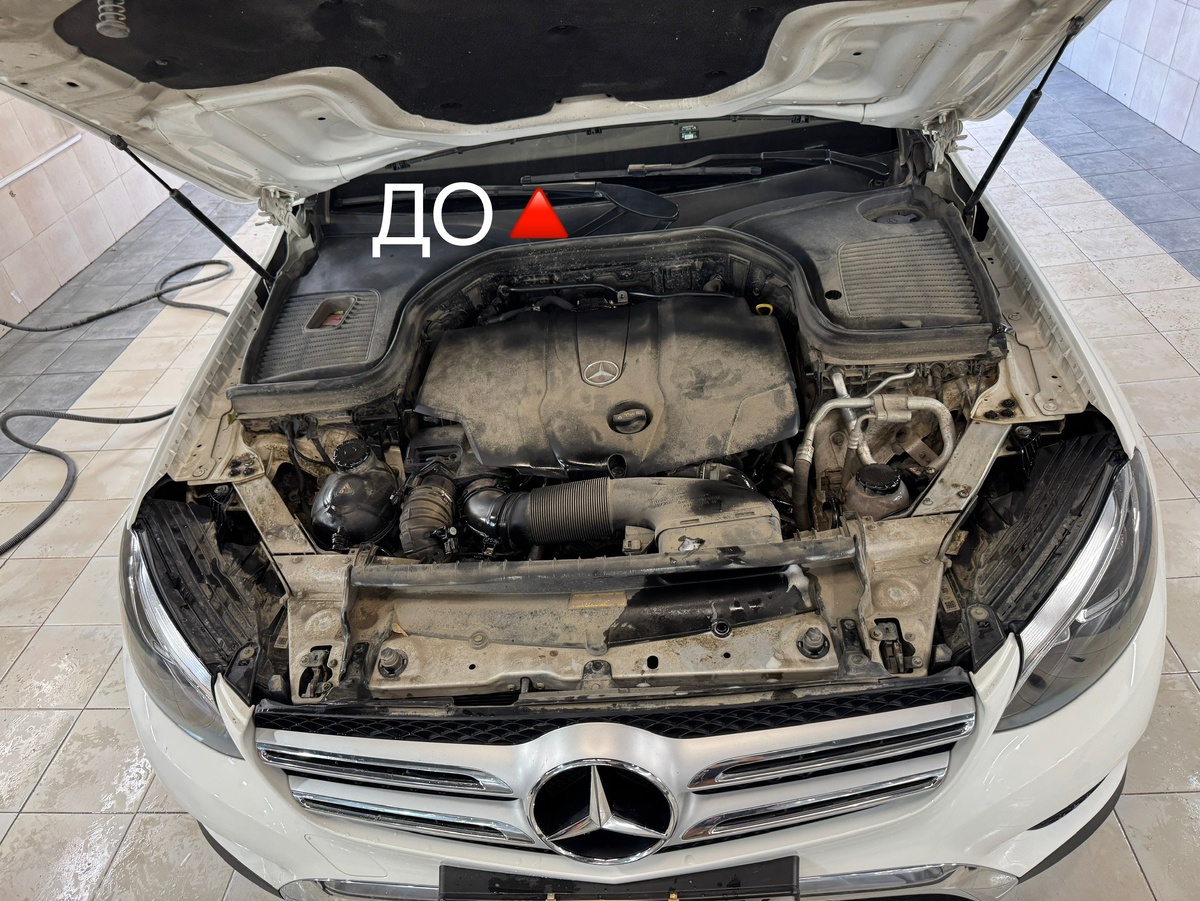 Мойка подкапотного пространства Mercedes-Benz GLC с консервацией. Нужна такая процедура для поддержания чистоты и работоспособности автомобиля, а также для улучшения его эстетического вида. Грязь, пыль и масляные пятна, накапливающиеся в моторном отсеке, могут привести к ухудшению теплоотдачи, преждевременному износу деталей, а также затруднить поиск неисправностей при ремонте. Записаться на детейлинг мойку можно по телефону / WhatsApp: +79656166437 г. Казань, ул. Гаврилова 10А (въезд со стороны жилых домов)