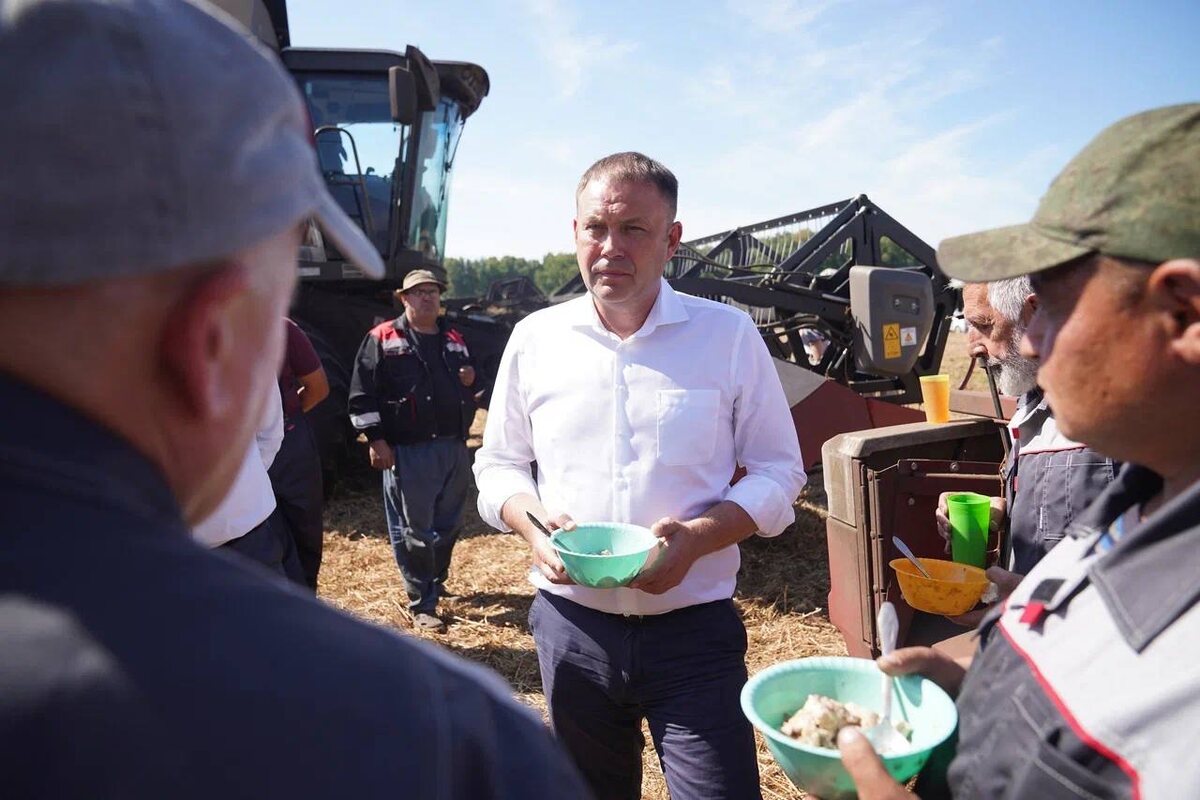В Кузбассе идёт уборочная кампания. Губернатор области Илья Середюк проверил работы на полях в Промышленновском округе. Здесь приступили к уборке гороха. Общие посевные площади предприятия превышают 11 тысяч гектаров, где выращивают зерновые, зернобобовые и технические культуры. «Работа сейчас сложная — приходится вставать рано, возвращаться поздно, используют каждый погожий час. Перерыв только на обед, и то не отходят от комбайна, прямо в поле. Подкрепились — и на уборку урожая», — написал Илья Середюк. К настоящему моменту в Кузбассе обмолочено 93 000 гектаров зерновых и зернобобовых культуры — 18% от плана. Намолочено 302 000 тонн зерна, средняя урожайность составляет 32 центнера с гектара. С полей убрано 85% озимых культур, картофель и овощи уже убрали с площади 229 гектаров, сообщили в пресс-службе администрации правительства Кузбасса. Фото: Илья Середюк / Telegram