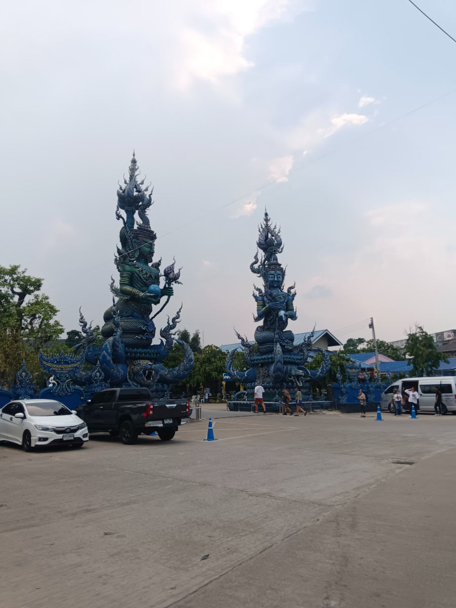 Если Белый храм в Чианграе олицетворяет чистоту, то Синий храм (Wat Rong Suea Ten) поражает своей мистической атмосферой. Это одна из самых новых достопримечательностей города, построенная в 2005–2016 годах. Его ярко-синие стены и золотые элементы видны издалека, а внутри гостей встречает сияющий Белый Будда. Легенда и название Название храма переводится как «Храм танцующего тигра». Считается, что раньше здесь обитали тигры, и место имело особую энергетику. Архитектура и символика 🖼 Ярко-синие стены, расписанные узорами, символизируют бескрайнее небо и духовную бесконечность. Золотые элементы — напоминание о божественном свете. У входа стоят фигуры мифических существ — драконов и слонов. Что посмотреть внутри 🖼 1. Главный зал — просторный, с огромной статуей Белого Будды, подсвеченной голубым светом. 2. Фрески на стенах и потолке — изображают сцены из жизни Будды и элементы космоса. 3. Фигуры хранителей у ворот — мифические существа в синих и бирюзовых оттенках, символизиру