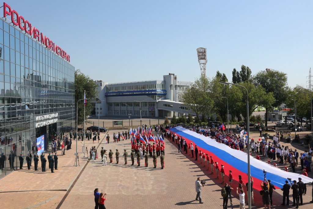 Сегодня, 22 августа, в Ростове-на-Дону перед комплексом «Россия – моя история» прошло мероприятие, посвященное Дню Государственного флага России. Участников акции и жителей региона поздравил глава донского региона Юрий Слюсарь. На площади перед мультимедийным комплексом был развернут 60-метровый российский триколор, а также флаги с подписями командиров подразделений, участвующих в специальной военной операции и освобождавших населенные пункты Донецкой и Луганской народных республик. Каждый из этих флагов символизирует храбрость, мужество и стойкость российских солдат, отметил глава региона. В обращении к участникам мероприятия Юрий Слюсарь подчеркнул, что День российского флага – это общенародный праздник, объединяющий граждан страны вне зависимости от возраста, национальности и религиозных взглядов. Он отметил, что этот день олицетворяет многовековую историю России, славу предков, гордость за современные достижения и веру в светлое будущее. «С триколором совершают ратные подвиги воины