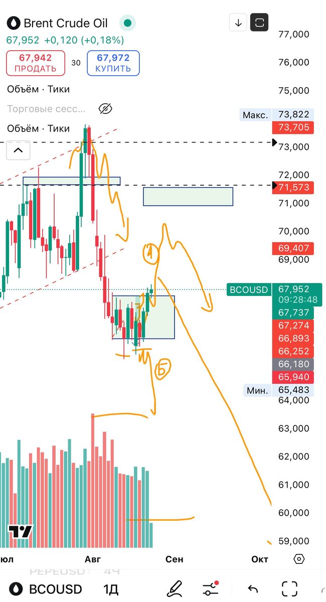 В ответ на пост Нефть. По следам торгового плана, идет восстановление в волне А (АВС зигзаг). Полагаю что август даст хорошую точку входа в дальнейший шорт, возможно от 70$ за бочку