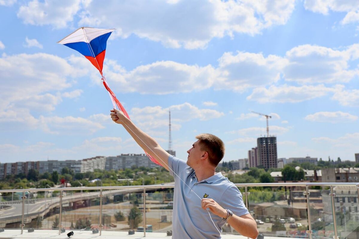 Возможности на высоте Сегодня с нашими друзьями из Общества "Знание", Молсоветом при Администрации города Луганска, Дарьей Губаревой и Домом молодежи подготовили важную встречу. В Доме знаний дети с родителями узнали об истории флага России, а после лекций поднялись на крышу и запустили воздушных змеев, которых собрали своими руками. На хвосте каждого змея — ленты с желаниями этих детей. Слова очень теплые и искренние: про скорейшее наступление мира, хорошую учебу в школе, счастливых горожан и победу. Получилось красиво 🇷🇺 #ПодОднимФлагом #РоссияСтранаВозможностей #ТерриторияНовыхВозможностей Калитвенцев в ЛНР