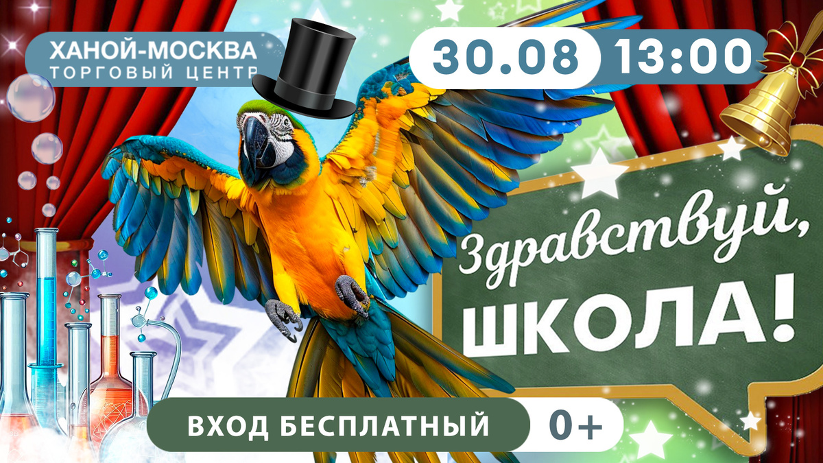 30 августа, в преддверии 1 сентября, в «Ханой-Москва» пройдет мероприятие «Здравствуй, школа». В программе: детское театрализованное шоу «Красочная улица» с авторскими декорациями, эффектными постановками и химическими трюками. В качестве хедлайнера выступит фокусник с роскошным попугаем и мелкими животными. По окончанию мероприятия пройдет сладкая, беспроигрышная лотерея. Когда: 30 августа 13-00 Где: ТЦ «Ханой-Москва», 2 этаж Вход свободный.