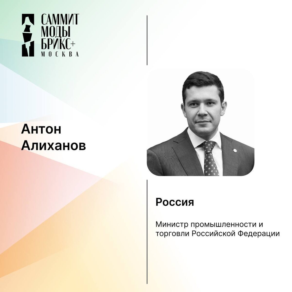 Сессия деловой программы BRICS+ Fashion Summit «Мода 360°. Развитие сопутствующих отраслей производства» пройдёт 28 августа в 12:00. (Зал «Большой») Модератор сессии: первый заместитель генерального директора института развития «Иннопрактика» Наталья Попова. Спикеры сессии: министр промышленности и торговли Российской Федерации Антон Алиханов, дизайнер и основатель бренда Alena Akhmadullina Алена Ахмадуллина, президент Международной федерации одежды (IAF) Джем Алтан, генеральный директор Lamoda Максим Гришаков, вице-президент Группы компаний «Новард» | «Эконика» Сергей Саркисов, исполнительный председатель совета директоров Китайской ассоциации моды Ян Цзянь. Попасть на деловую программу BRICS+ Fashion Summit (Саммит Моды БРИКС+) могут все желающие по предварительной регистрации на официальном сайте.