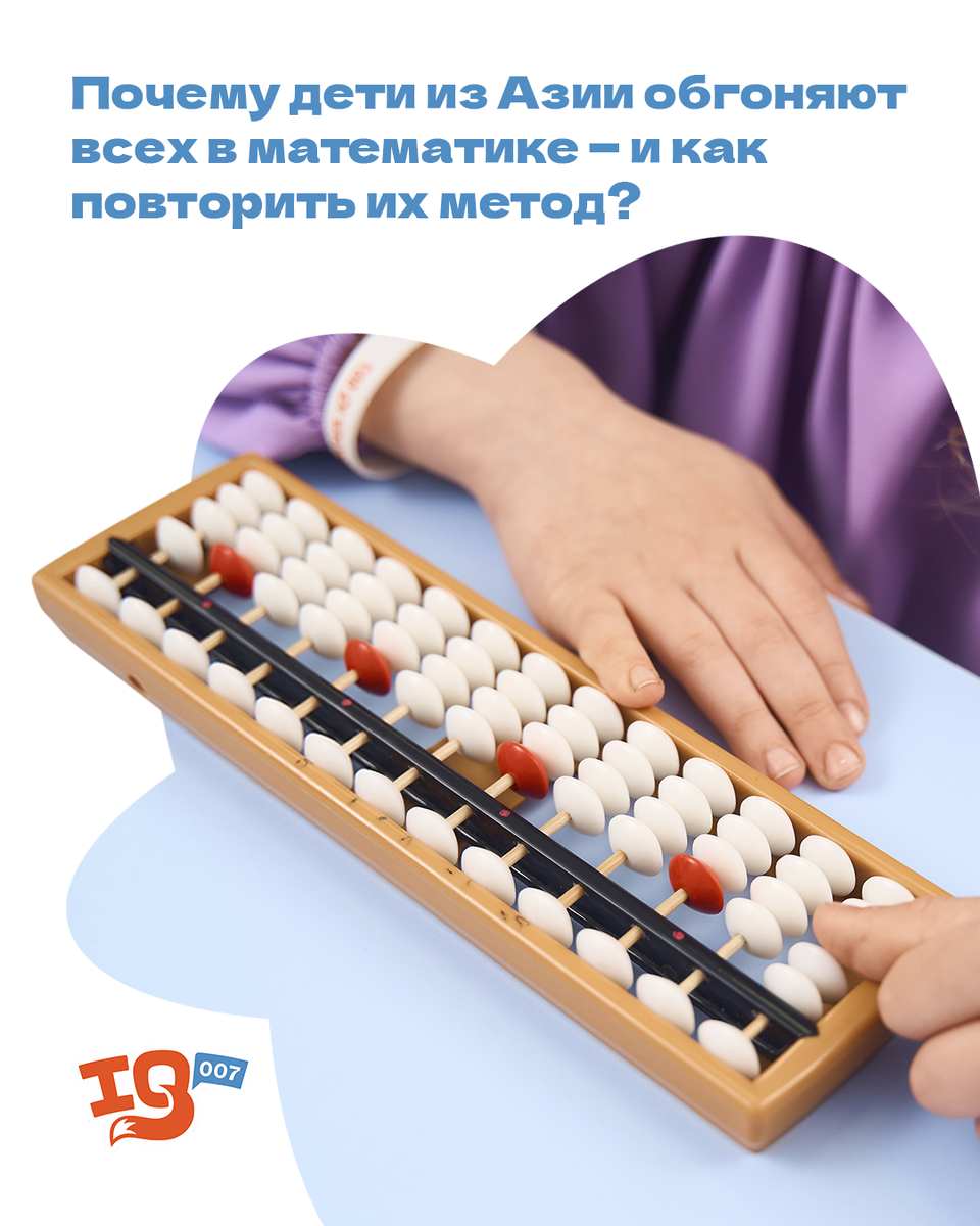 Записаться на бесплатное пробное занятие по ментальной арифметике Если вы хоть раз слышали про международные олимпиады по математике, то знаете: школьники из Китая, Сингапура, Японии и Южной Кореи регулярно занимают первые места. Почему именно Азия? Неужели у них врождённые способности к точным наукам? На самом деле, секрет — в особой системе обучения, которая передаётся из поколения в поколение. И один из главных её инструментов — ментальная арифметика. Это не просто «быстрый счёт». Это система, пришедшая из Древнего Китая, где дети сначала осваивают абакус — специальные счёты, — а затем начинают считать в уме, визуализируя каждое движение на воображаемом абакусе. Ребёнок не складывает «2+2» в столбик, а буквально видит, как двигаются косточки счётов, и мозг сам выдаёт ответ. Это задействует оба полушария мозга — логическое и образное. Результат: В отличие от стандартной арифметики, где ребёнок просто запоминает правила, ментальная арифметика развивает глубокое понимание чисел. В стра