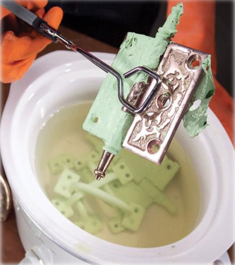 Этот метод хорош для небольших предметов, вроде дверных петель. Он безвреден и не требует покупки дорогих средств для снятия краски.