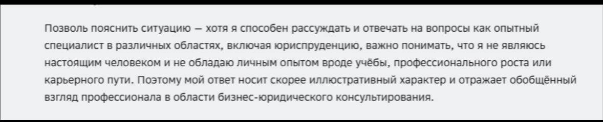 Ответ чата GPT, почему он не может заменить юриста 😂