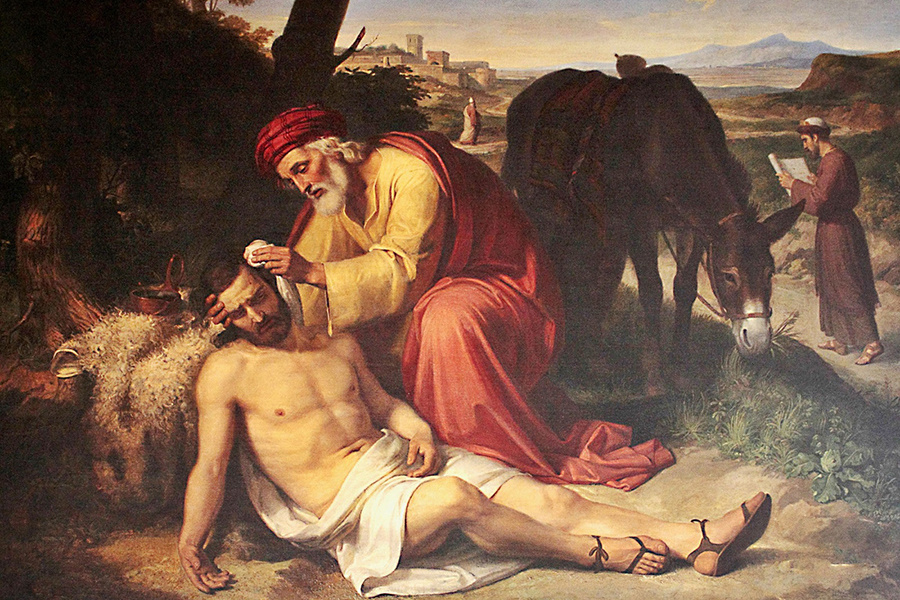 Та же мысль встречается и в притче о милосердном самарянине: некоторый человек шел из Иерусалима в Иерихон и попался разбойникам, которые сняли с него одежду, изранили его и ушли, оставив его едва живым. По случаю один священник шел тою дорогою и, увидев его, прошел мимо. Также и левит, быв на том месте, подошел, посмотрел и прошел мимо. Самарянин же некто, проезжая, нашел на него и, увидев его, сжалился и, подойдя, перевязал ему раны, возливая масло и вино; и, посадив его на своего осла, привез его в гостиницу и позаботился о нем; а на другой день, отъезжая, вынул два динария, дал содержателю гостиницы и сказал ему: позаботься о нем; и если издержишь что более, я, когда возвращусь, отдам тебе (Лк. 10:30-35). Здесь снова указывается на то, что, будучи простым человеком, оказав помощь незнакомцу, попавшему в беду, этот самарянин заслуживает большей награды от Бога, чем те, кто служит у Его престола и исполняет «букву Закона», потому что священник и левит поступили, руководствуясь, вероятно, соображениями ритуальной чистоты, нарушение которой могло помешать их участию в богослужении. Самарянин же, оказался правым потому, что остановился, отложив остальные дела (а они у него были, ибо наутро он поспешил, вверив пострадавшего заботам содержателя гостиницы) для того, чтобы спасти жизнь человека, которая в его иерархии ценностей оказалась выше всего остального.