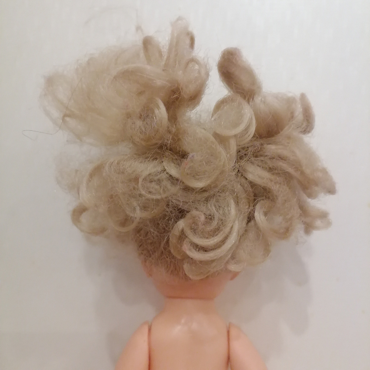 Не так давно я вам показывала куклу Галочку, которую мне сильно хотелось, но и ради которой мне прилось приобрести ее "друзей"), так как отдельно она не продавалась, а цена ее была не высока. Приступила к ее преображению, а именно, к выведению ее "дредов", которые образовались от времени и активной игры с ней. Волосы оказались в печальном состоянии с некоторыми временными потерями их, но все равно волосы еще можно спасти. А так "дреды" стали выглядеть после их распутыванияи расчесывания: Фото сделано буквально в ночи, так как днем, по классике жанра, находятся другие дела.)) Несколько часов работы и ,вуаля, волосы преобразились! Так мне они нравятся намного больше! В процессе их преображения выяснилось, что прошика у Галочки была достаточно редкой и неровной, волос на голове куклы очень мало)), но не буду ругать за это фабрику, даю сноску на время.. Вот такой результат у меня получился! дальше буду думать, как нарядить свою красотку и предстоит волосам придать какую-нибудь прическу