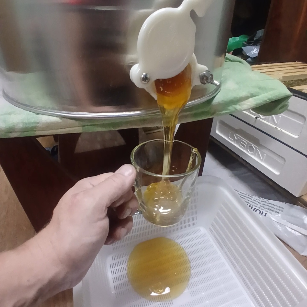 Поздравляю всех с медовый спасом и выпиваю бокал мёда за здоровье всех в этом мире. Снимаем пробу мёда 2025года.