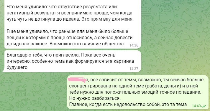 В среду вторая встреча моего нового исследовательского проекта на тему Перфекционизма и перфикциониста. Будем тестить задания. Участникам 😘! P.S. Скрин с отзывом первой встречи на фото🕊