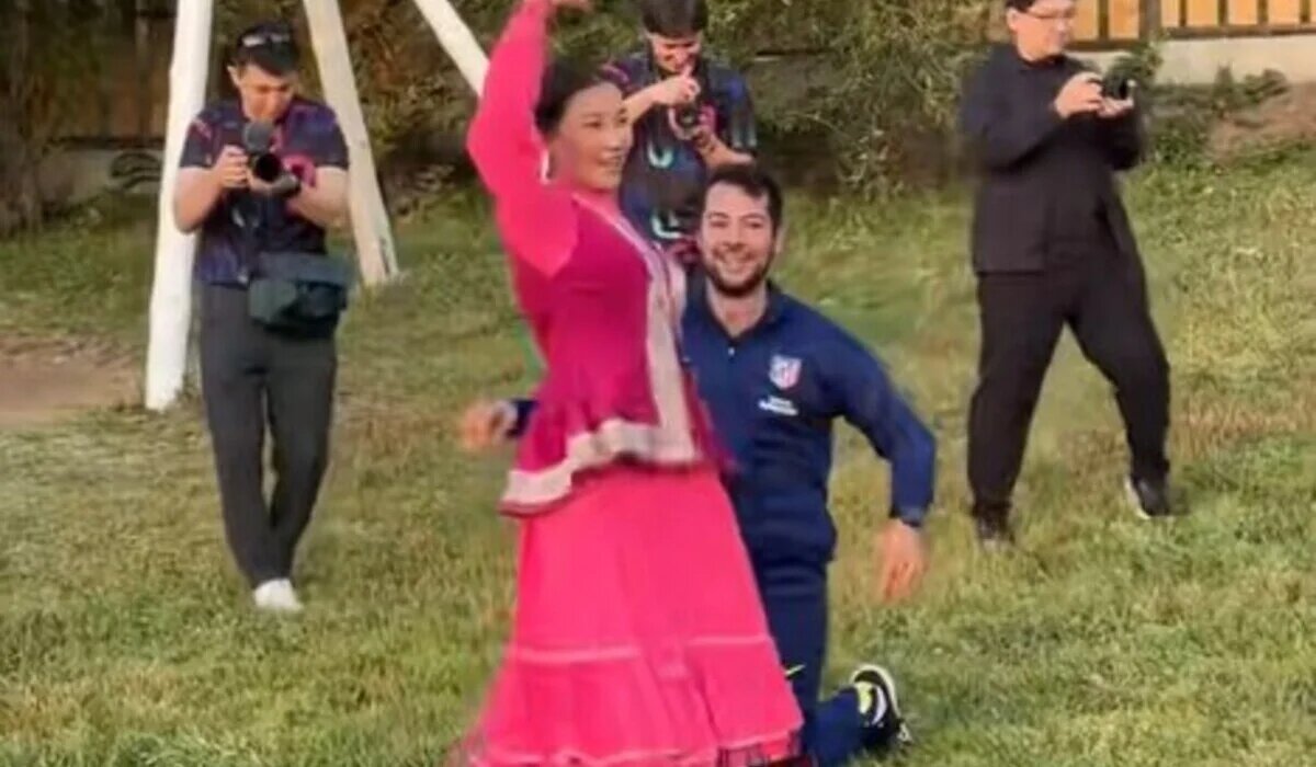Гости из Испании станцевали танец «Қара Жорға» вместе с местными девушками, передает Azattyq Rýhy. На видео видно, как футболисты и тренерский штаб клуба «Атлетико Мадрид» наблюдают за национальным танцем, а некоторые даже присоединились. Гостям из Испании танец явно понравился: снимали происходящее на видео и аплодировали танцующим. Также автор видео отметил, что гостей знакомят с традициями Казахстана: перед ужином для них устроили танцы, а позже будут угощать национальными блюдами. Отметим, что футболисты U-18 испанского клуба «Атлетико Мадрид» и их тренерский штаб прибыли в Алматы на матч с казахстанской командой QJ LEAGUE ALL STAR. Кроме того, организаторы познакомили испанских футболистов с казахскими национальными играми. Гости с интересом наблюдали за конными трюками - жамбы ату и садақ ату. Ранее мы писали, что футболистам «Атлетико Мадрид» показали конные трюки в Алматы. Напомним, встреча испанского клуба с казахстанской командой состоится в субботу, 23 августа, на стадионе «