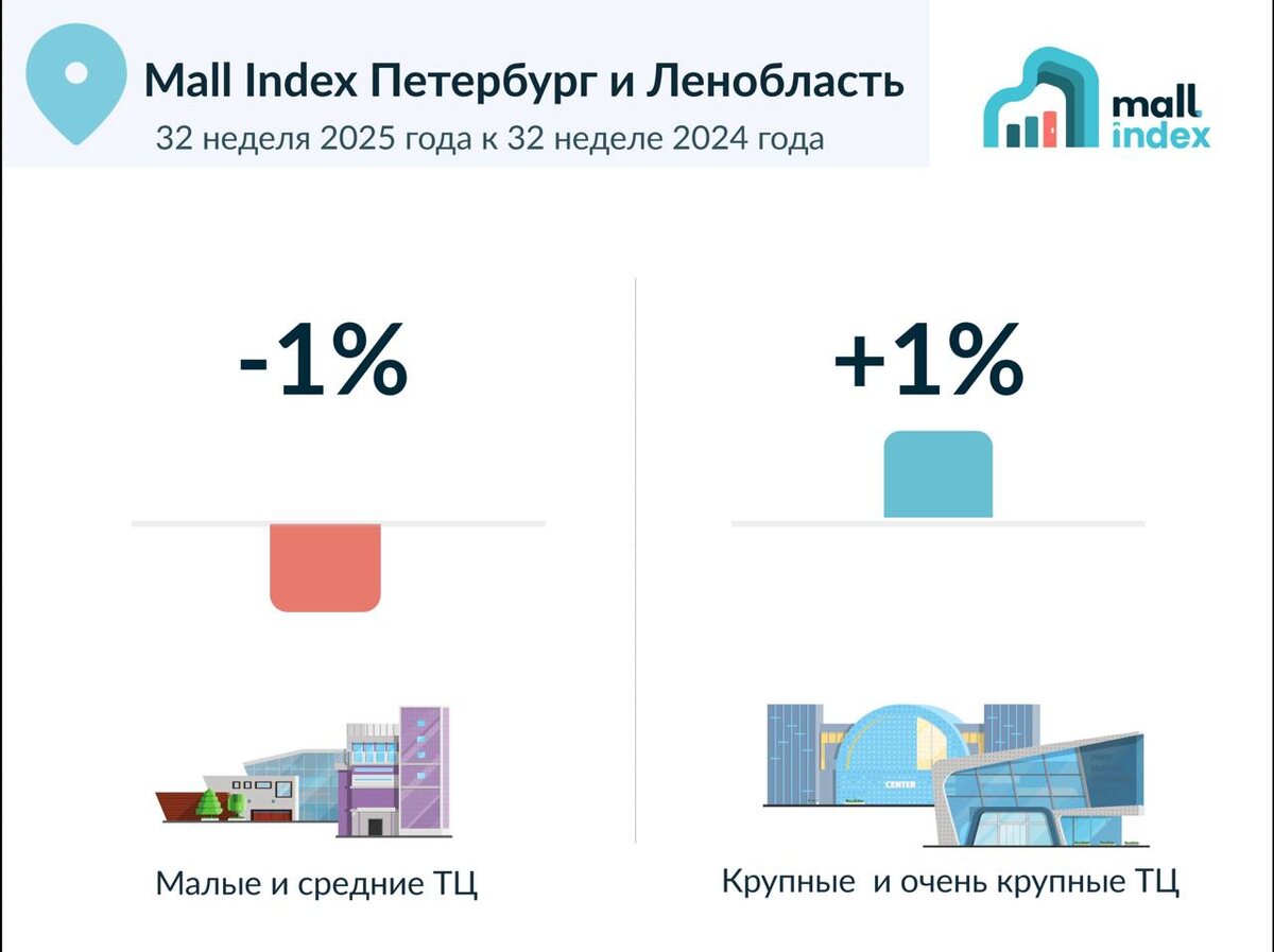 🏙️ТЦ Петербурга и Ленобласти, Mall Index 32 неделя 2025 года
