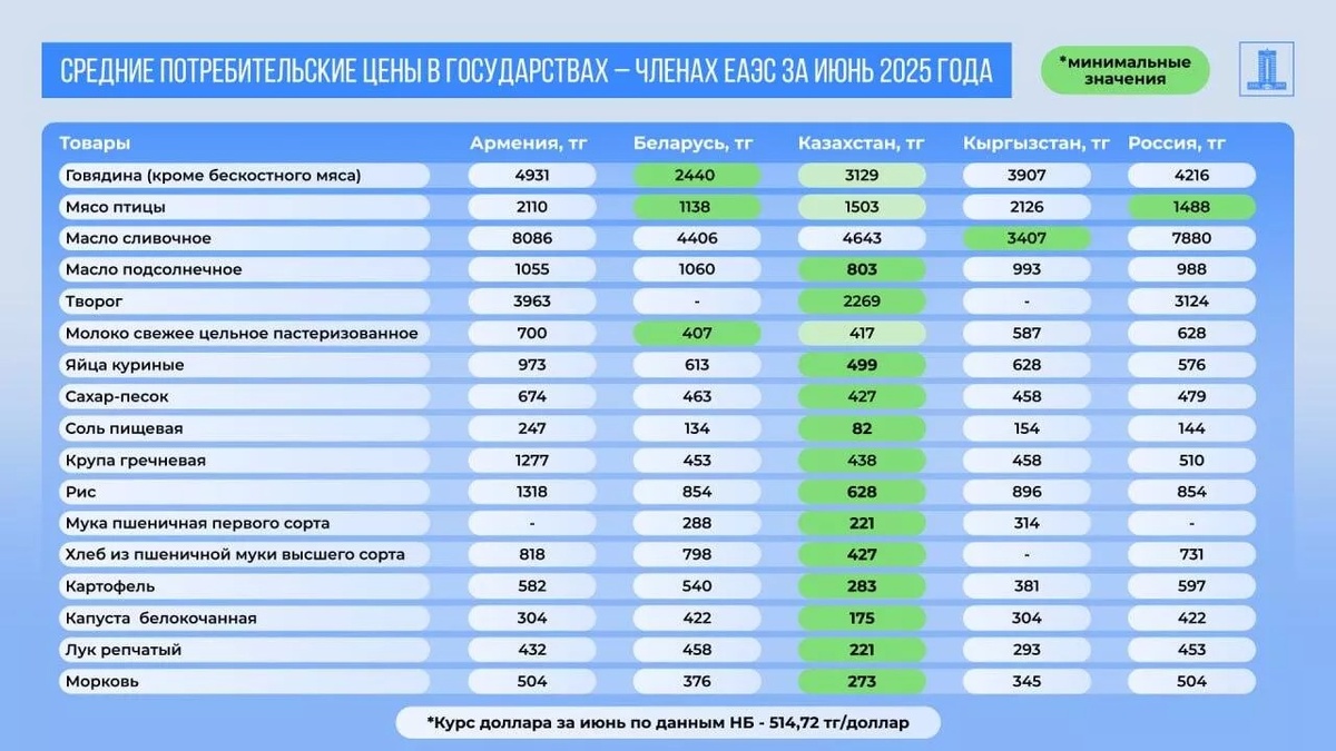 Речь идет о яйцах, картофеле, твороге, гречке и других товарах, которые ежедневно оказываются на десятках тысяч столов в странах ЕАЭС. Страна уступает только по ценам на молоко, говядину, курятину.
