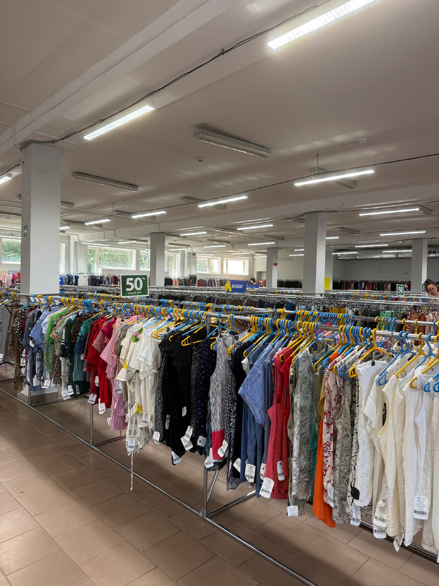 Этот магазин находится возле МКАД, ул. Брикета, 2. Без машины к нему добираться очень сложно. Но на машине удобно, напротив магазина находится удобная парковка Вообще , этот адрес - знаковое место для меня! Именно там начиналось мое хобби. В начале нулевых по этому адресу находился тоже сэконд хенд, кажется, он назывался Планета секонд-хенд. Там были шикарнейшие вещи прямиком из Италии! Кожаные рубашки, замшевые платья, кашемировые кардиганы и пальто из 100 % мериноса! Armani Roberto Cavalli Versace, обувь из кожи ручной работы! Это был Клондайк! Но все течет, все меняется! Потом этот магазин закрылся и долгое время на его месте ничего не было. А сейчас я увидела билборд с рекламой, где был указан знакомый адрес, и поспешила туда. Попала на 50% скидки Просторный зал с примерочными Большой выбор одежды из Англии: Next Mark&Spenser Esmara Per una. Много детского, есть спорт и мужское Вся одежда в хорошем состоянии! Развешаны по цветам. Не смотря на идущие скидки, выбор есть, в том чис