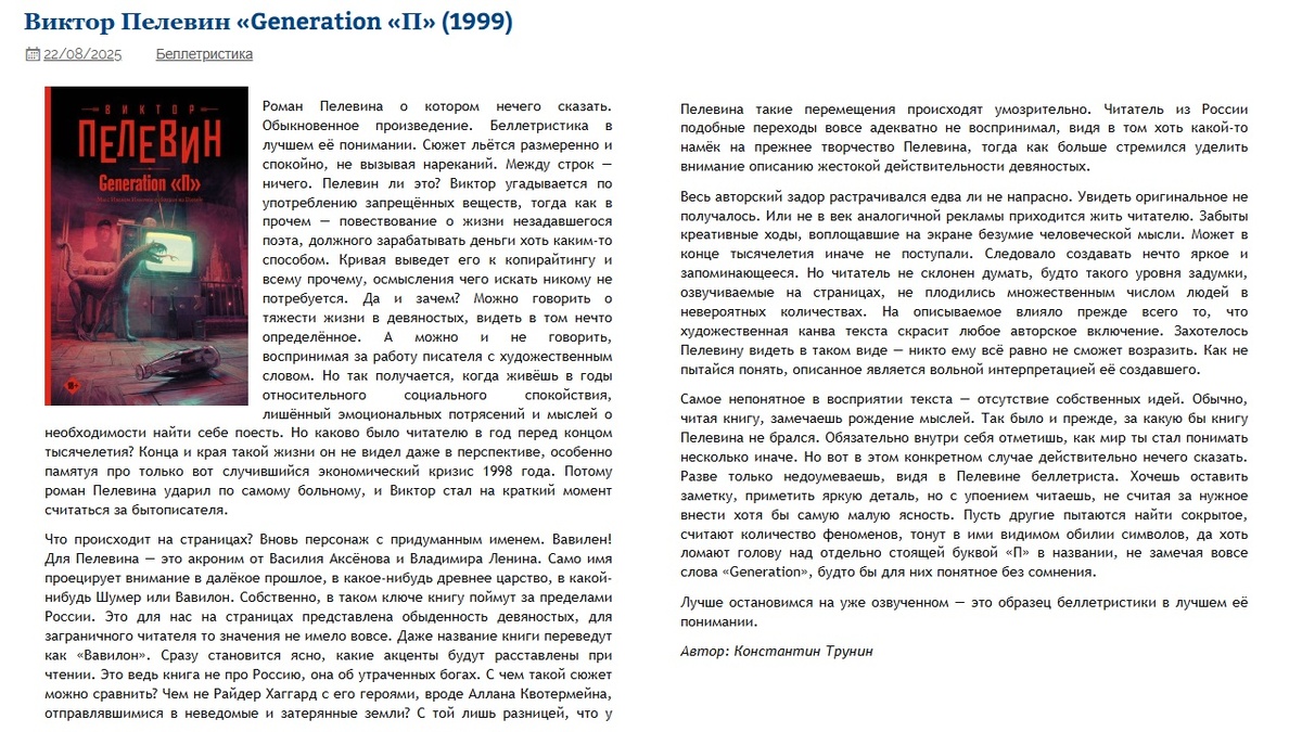 Виктор Пелевин «Generation «П» (1999) | Критика