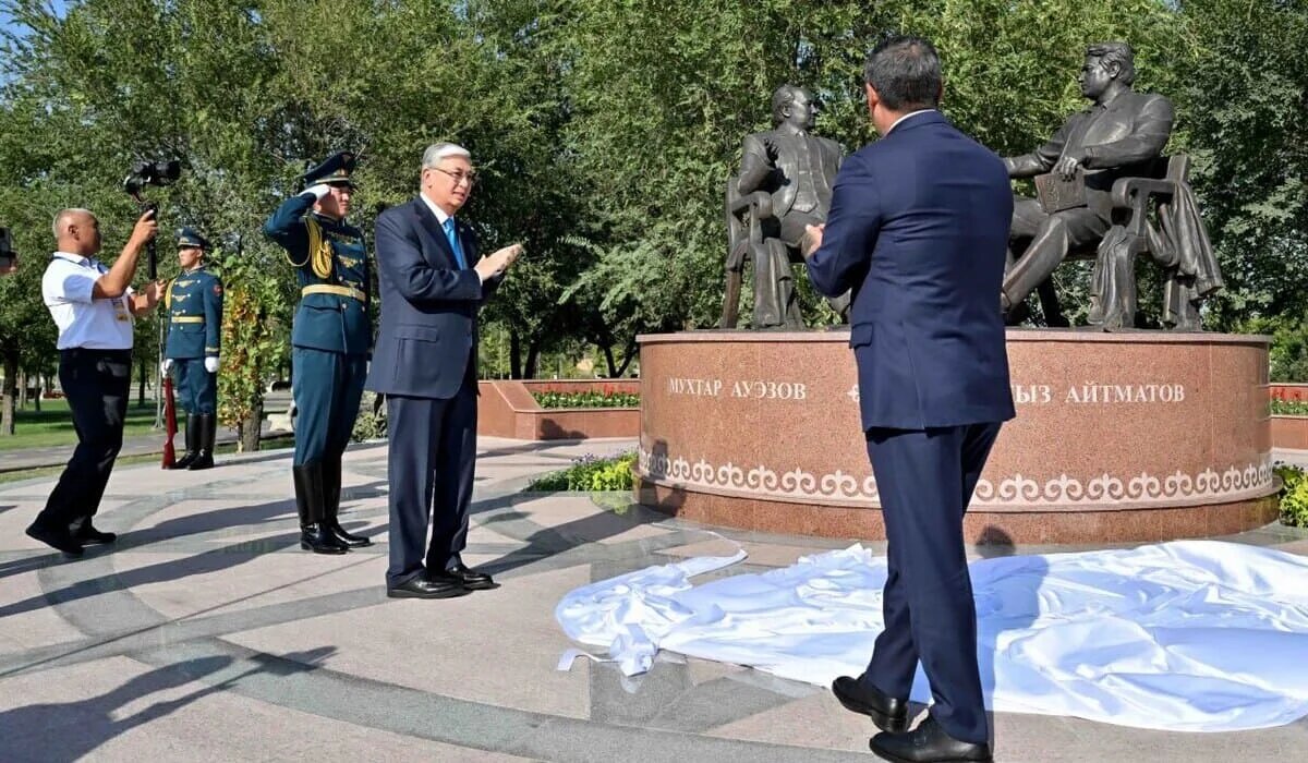 В Бишкеке на Аллее дружбы Кыргызстана и Казахстана состоялось торжественное открытие памятника «Золотой мост дружбы» посвященного Мухтару Ауэзову и Чингизу Айтматову, передает Azattyq Rýhy со ссылкой на Акорду. Монумент посвящен выдающимся писателям двух народов – Мухтару Ауэзову и Чингизу Айтматову. Инициатором проекта выступила Ассоциация казахов Кыргызстана, а поддержку он получил на уровне президентов двух стран. Касым-Жомарт Токаев в своем выступлении подчеркнул, что открытие памятника стало знаковым событием для обоих народов. «Монумент служит ярким символом братских уз наших стран и знаком особого уважения кыргызского народа к казахскому народу. Убежден, что монумент дружбы будет играть важную роль в культурной и духовной жизни города, имеющего богатую историю. В прошлом году в столице Казахстана мы торжественно открыли памятник Айкол Манасу. Нет более близких народов, чем казахи и кыргызы. Наши народы связаны кровными и духовными узами, общей историей и культурным наследием. На
