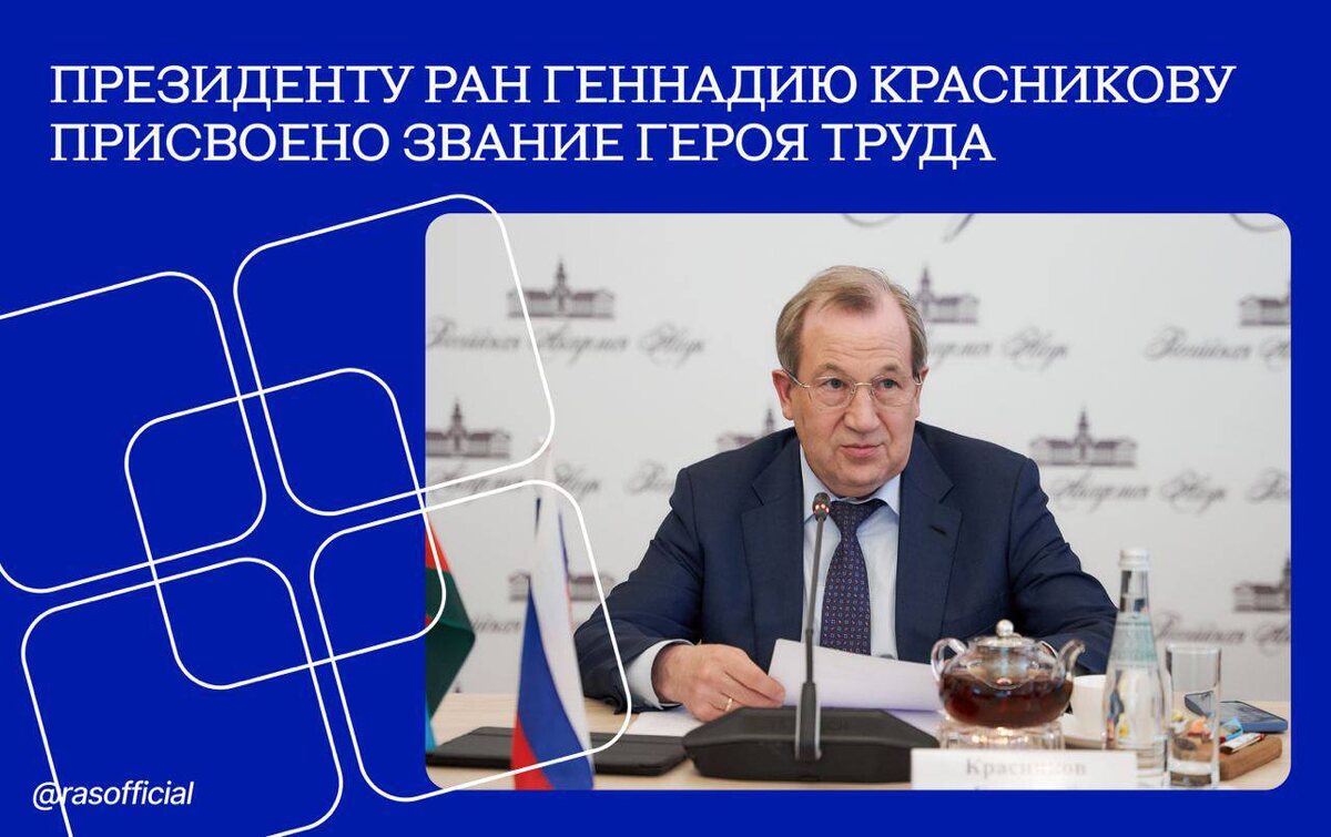 Владимир Путин присвоил звание Героя Труда президенту РАН Геннадию Красникову 🎖️ Президент РАН академик Геннадий Красников удостоен звания Героя Труда Российской Федерации. Звание присуждено «за особые заслуги перед государством и выдающийся вклад в развитие отечественной науки». Академик Геннадий Красников — ведущий специалист в области физики полупроводников и микроэлектроники. Автор более 500 научных работ в российских и зарубежных изданиях. 🔬 Его научные результаты легли в основу создания современного уникального комплекса по разработке и промышленному производству интегральных микросхем, на базе которых реализованы стратегические государственные проекты в области телекоммуникации и связи, транспорта, национальной платежной банковской системы МИР, выпуска государственных электронных документов. ❤️🎉 Коллектив ГАУГН поздравляет Геннадия Красникова и, подчеркивая важность дальнейшего сотрудничества с РАН, выражает уверенность в успешном развитии и воспитании будущих поколений у