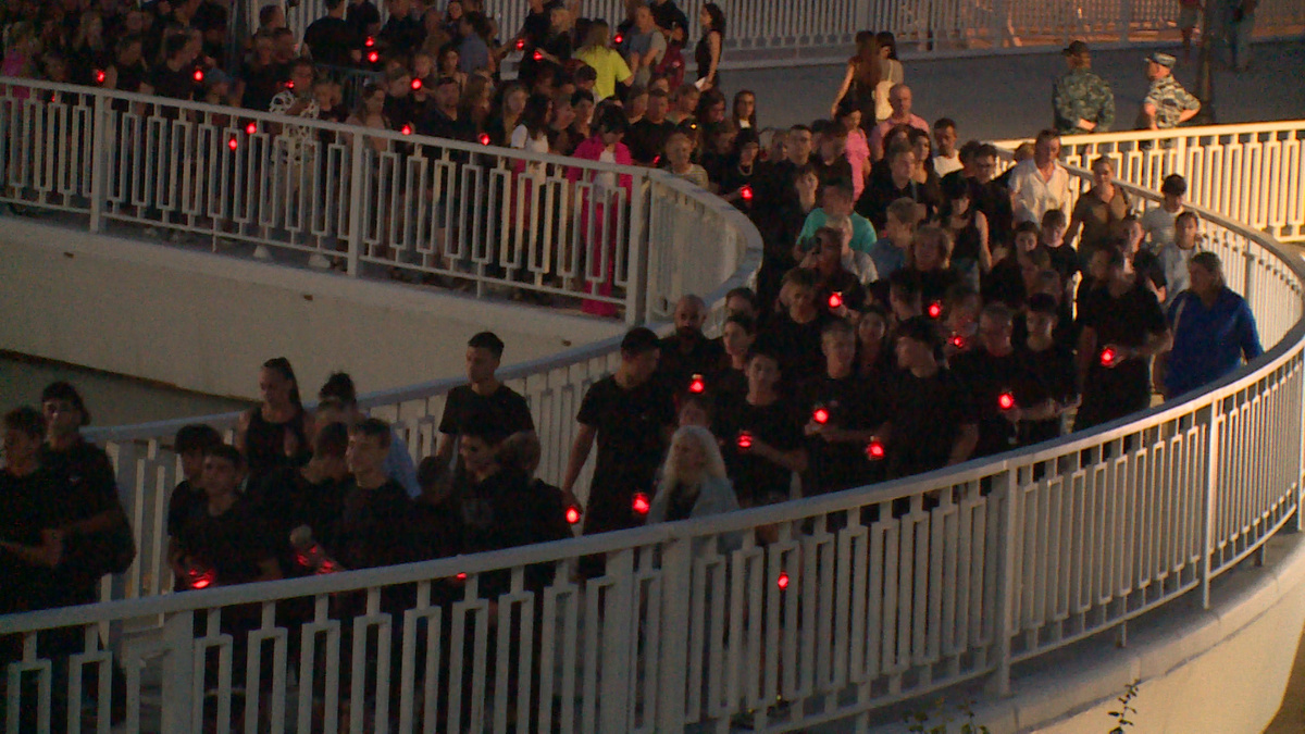 Завтра скорбная дата в истории нашего региона. 83-я годовщина варварской бомбардировки Сталинграда. Памятные мероприятия стартовали сегодня. Двести волгоградцев со свечами прошли от берега Волги до памятника жертвам авианалета 23 августа 1942 года. Для каждого жителя Сталинграда-Волгограда 23 августа – особая, скорбная дата. В 1942 году город подвергся варварской бесчеловечной бомбардировке, а всего, в период до середины сентября, на промышленную инфраструктуру и дома мирных жителей было сброшено порядка 50 тысяч снарядов. В преддверии скорбной даты сотни людей собрались на набережной у амфитеатра в рамках памятной акции. Люди собрались, чтобы вспомнить тех, кто погиб в охваченном огнем городе. Были убиты более 40 тысяч мирных жителей, еще более 50 тысяч ранены. Участники проекта познакомились со страницами истории Сталинградской битвы. Уникальные кадры показали на большом экране. «В преддверии памятной даты, годовщины тех кровавых дней Великой Отечественной войны, когда мирные жители