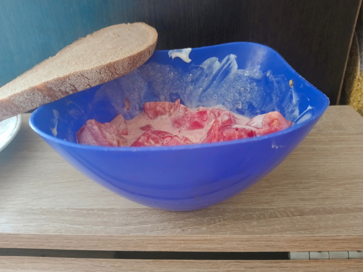 Сегодня я осознала отчего же вес вниз пошел резко за день. Всем доброго дня. Дети переболели, а следом решила и я. С утра я как тряпочка. Если у детей так болела голова и глаза, то я понимаю отчего они были капризны. Я стащила у мужа обезболивающие, настолько мне было худо. Утро началось с дичайшей головной боли с отдачей в глаза, и продолжалось все это весь день, плюсом жёстко сводит челюсть и ломит все тело. Встала с утра на водные процедуры, взвесила свою тушку и поняла, что всё. Устала. Практически весь день лежала. Ела тоже практически лёжа. Сын старший приносил. Дети младшие на муже и старшем сыне. Первый прием пищи был просто хлеб и крепкий сладкий чай, яблоко. Потом съела 4 вареника и салат из помидоров со сметаной, хлеб. Фото совсем не эстетичны. А вечером муж купил тортик. В холодильнике рагу с мясом, а мне не лезет. А тортик прекрасно влез. И семечки.