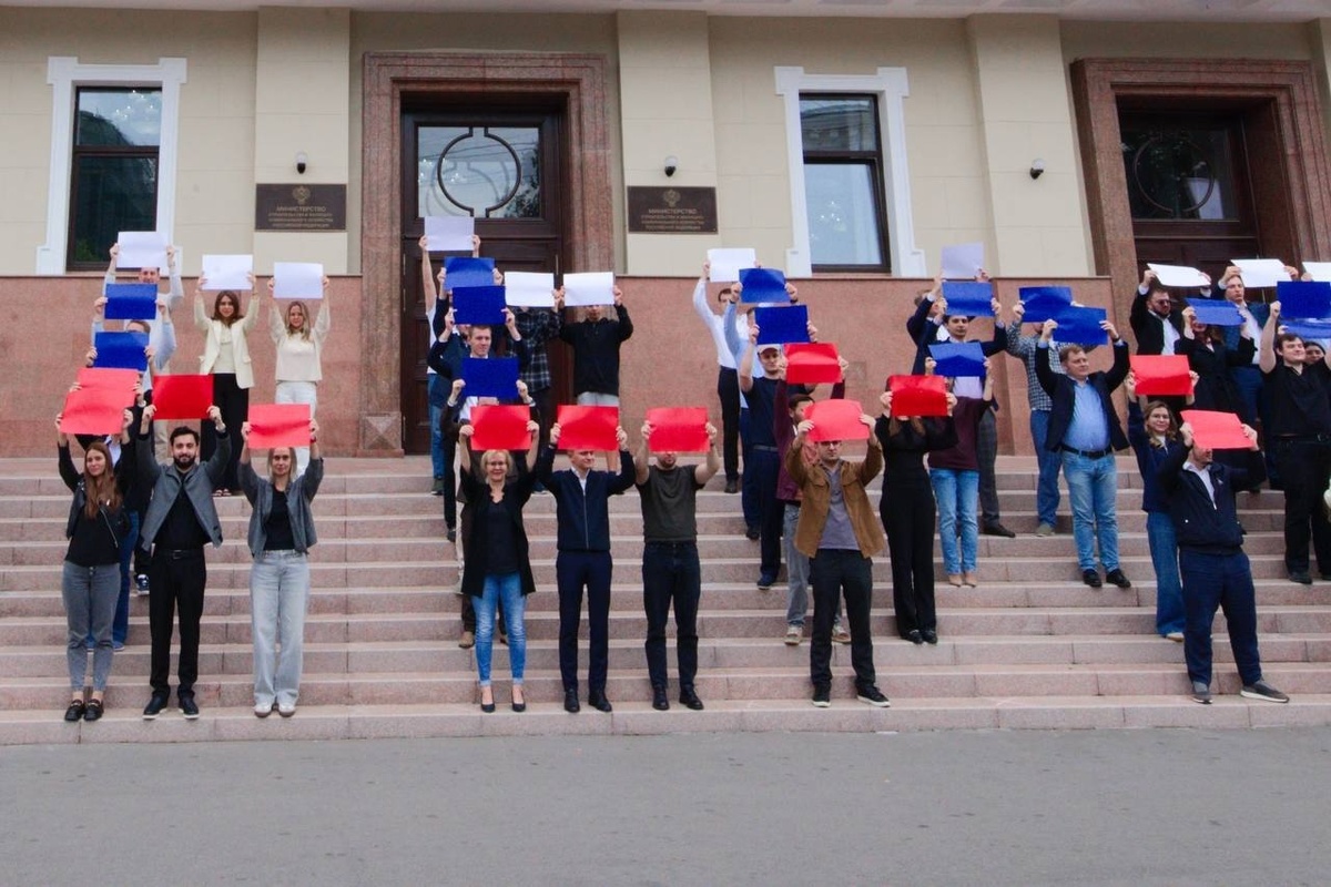 Участники Молодёжного совета Минстроя России присоединились к Всероссийскому флешмобу #Россия, приуроченному ко Дню Государственного флага