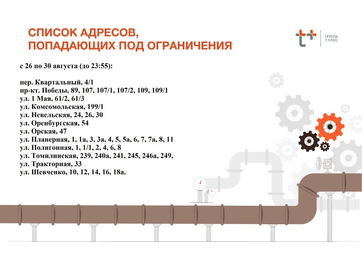 ❗️В Оренбурге горячую воду отключат с 24 по 30 августа по следующим адресам