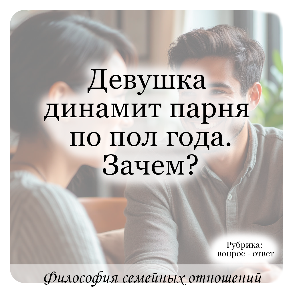 «Часто вижу такие истории, как девушка динамит парня по пол года. Объясните, в чём смысл так динамить мужичка... если нравится давай, не нравится ищи другого. Смысл мариновать его? Ведь если он так долго терпит и не тащит её в койку, то это говорит о его нерешительности и слабохарактерности, такие люди в жизни мало добиваются каких-то высот... им же самим с такими мужиками не очень живётся, которые ни рыба ни мясо!» Давайте по порядку… Мужчины и женщины между собой могу строить только 2 типа отношений – это сексуальные и семейные. Если им обоим интересен первый вариант, то никаких проблем нет к тому, чтобы совокупиться уже на первом свидании. Но бывает и ТУТ такая ситуация, когда женщина хочет интима с мужчиной, но по пол года не подпускает его к себе. Причина кроется в неумении донести до мужчины необходимый ему алгоритм действий. Т.е. она его хочет, но не понимает, что ему надо сказать или сделать, чтобы он начал те действия, после которых она бы его захотела. А некоторые вообще счит
