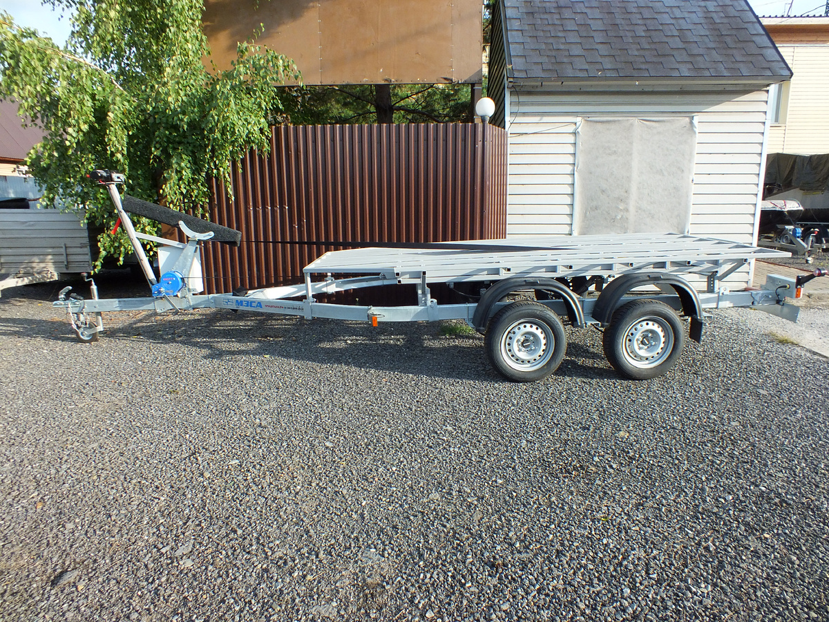 Для перевозки аэролодок «Нерпа 341КБ» и «Нерпа 441КБ», нашими инженерами-конструкторами был разработан легковой автоприцеп. Данная модель подходит водителям с категорией В и не требует категории ВЕ. У прицепа большой запас прочности и грузоподъёмности. В основе - классическая модель прицепа для килеватых лодок, но в конструкцию внесены существенные инновационные изменения: лаги заменены на цельносварную платформу, для удобной загрузки и разгрузки предусмотрены трапы, а также система лебёдок. Для производства прицепа мы выбрали долговечный и прочный металл, отказавшись от ненадежных материалов - дерева и фанеры, которые быстро разрушаются от влаги и могут повредить дно аэролодки. Все элементы металлической платформы мы покрываем качественной двухкомпонентной полиуретановой краской, которая применяется в промышленности, например, при покраске мостов. Она отличается износостойкостью, срок её службы без подкраски порядка 10 лет. На прицеп установлена система ле