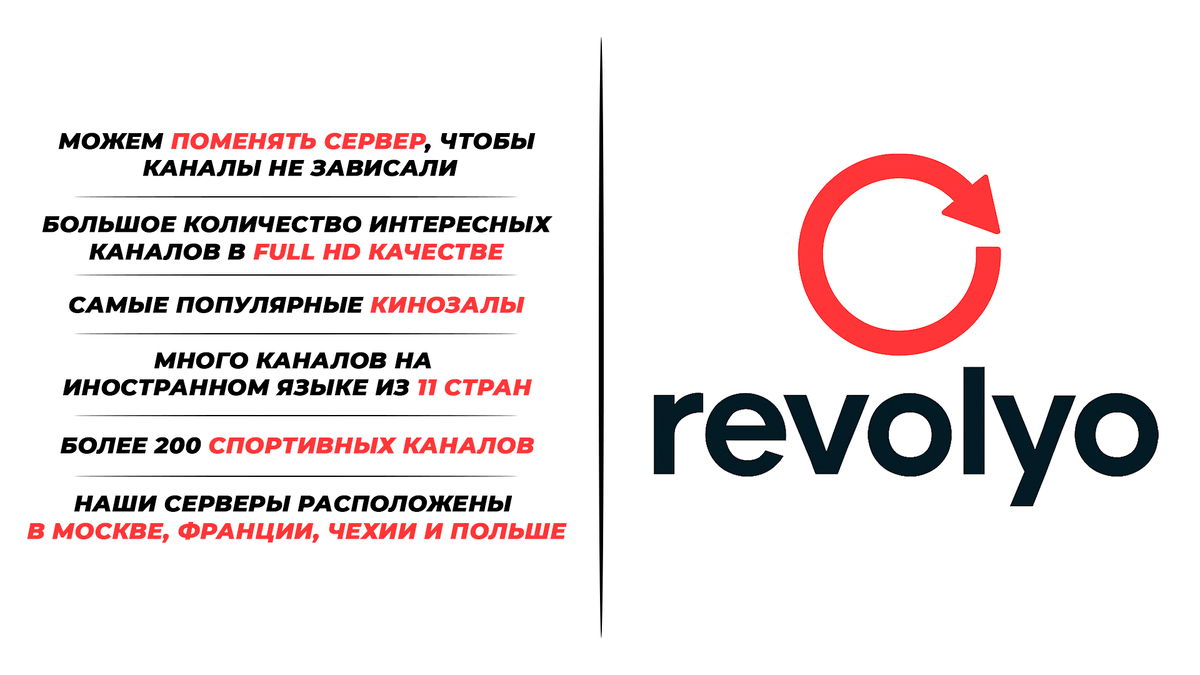 🔥 Друзья, важная новость! Я официально стал владельцем проекта Revolyo Теперь всё, что связано с сервисом – под моим контролем для вашего удобства. 🆕 Для вас я собрал новую подборку ТВ-каналов – ещё больше качества и стабильности. Уже сейчас стартуют первые продажи, а среди подписчиков я разыграю бесплатный плейлист на 30 дней. ✨ Главное преимущество сервиса: Мы можем менять сервер на другую страну индивидуально под каждого пользователя. Это значит, что ваши каналы будут работать максимально стабильно и без зависаний. 💵 Если вы хотите оформить подписку и поддержать мои начинания — буду вам искренне благодарен. Конкуренция в этой сфере огромная, но с вашей помощью мы можем сделать Revolyo проектом №1.